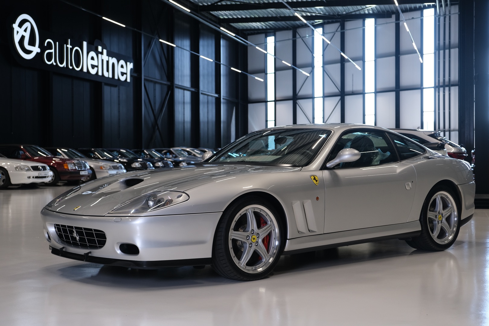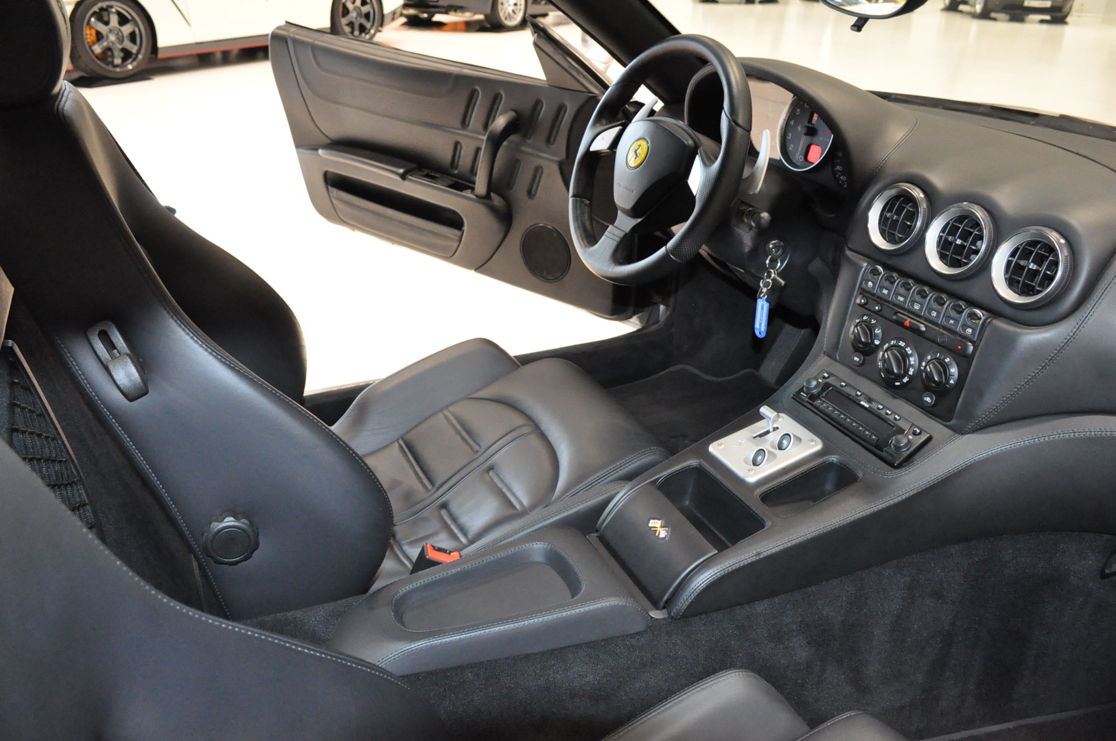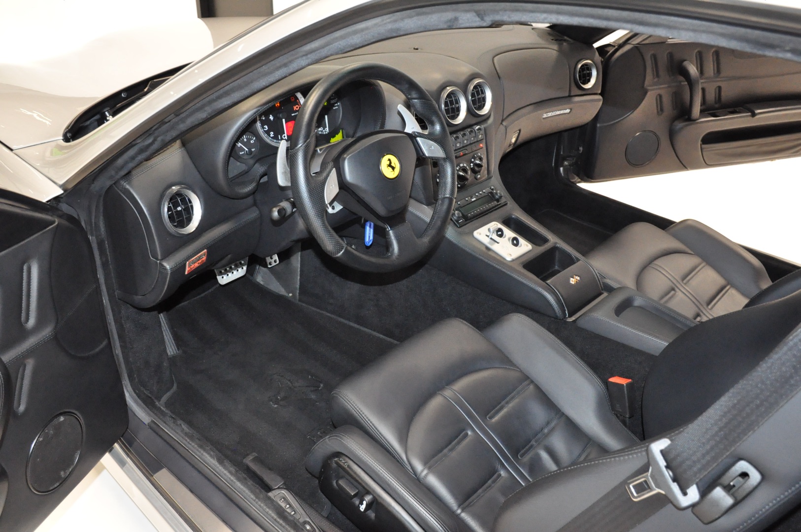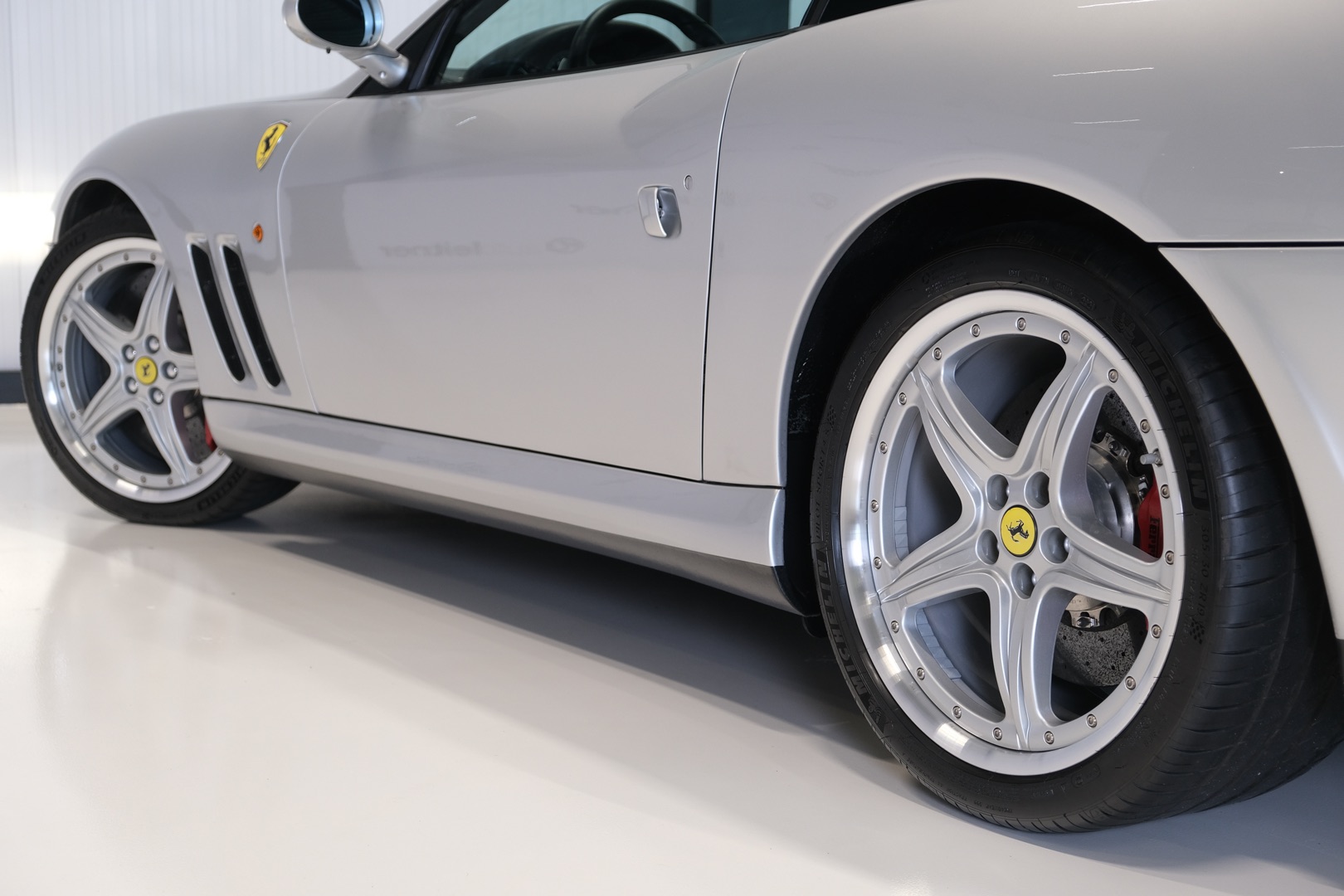 Schitterende Ferrari 575M met het zeldzame Handling GTC Package af-fabriek. Dit pakket omvat onder meer 19 inch gepolijste velgen, keramische remmen met rode remklauwen, titanium lichtgewicht sportuitlaten en een gewijzigd F1-schakelsysteem. Betreft een Duitse auto met volledige Ferrari dealer historie. Origineel 79.672 km en in zeer verzorgde conditie.