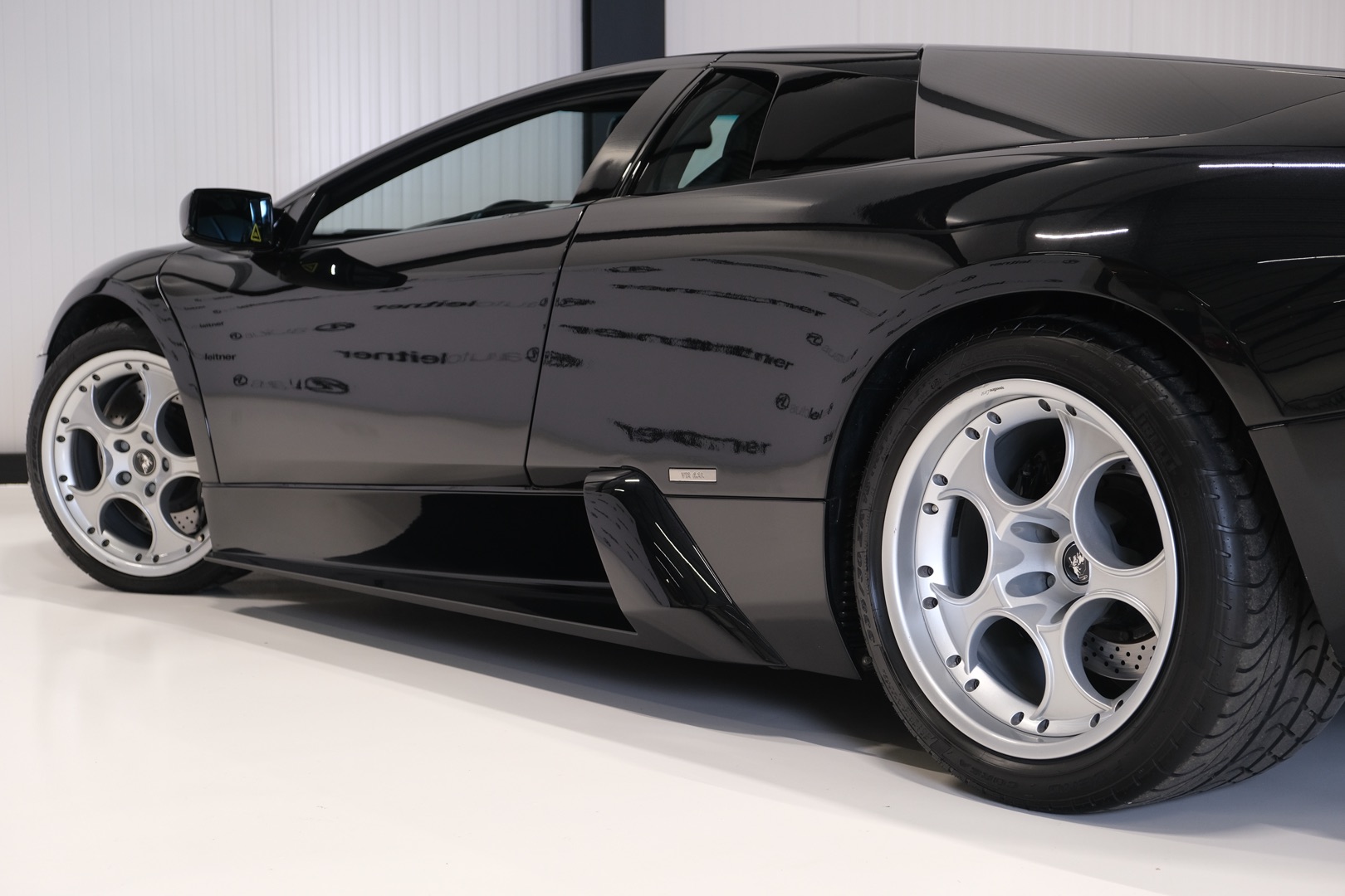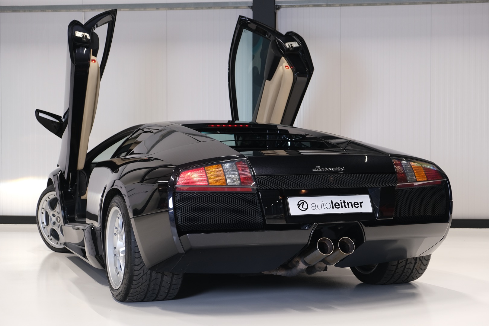 Een vroege 2001 Lamborghini Murcielago in de schitterende configuratie Nero metallic met Nero-Crema leder/alcantara en de gezochte handgeschakelde transmissie. Aantoonbaar slechts 42.468 km origineel en in verzamelaarsconditie. Eerste lak, volledig Lamborghini onderhouden en technisch helemaal bij. Dit betreft de vijfde geleverde Murcielago aan een bekende verzamelaar. A1 kwaliteit.