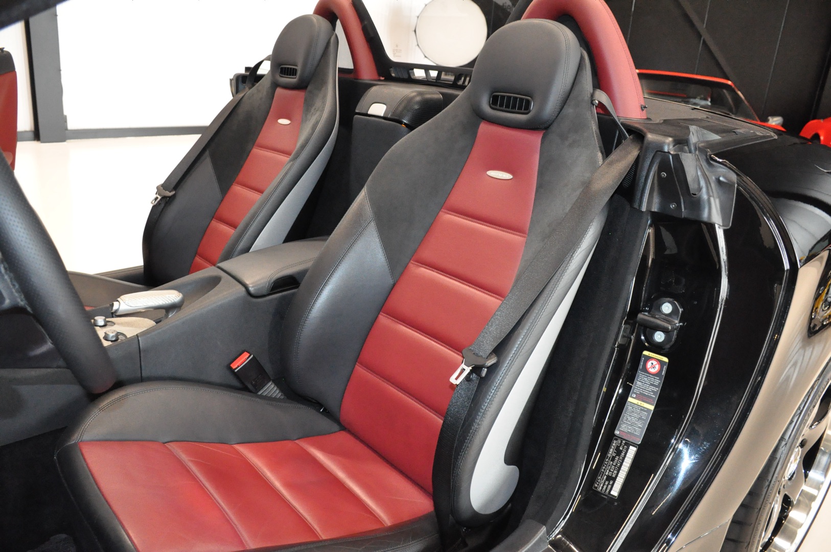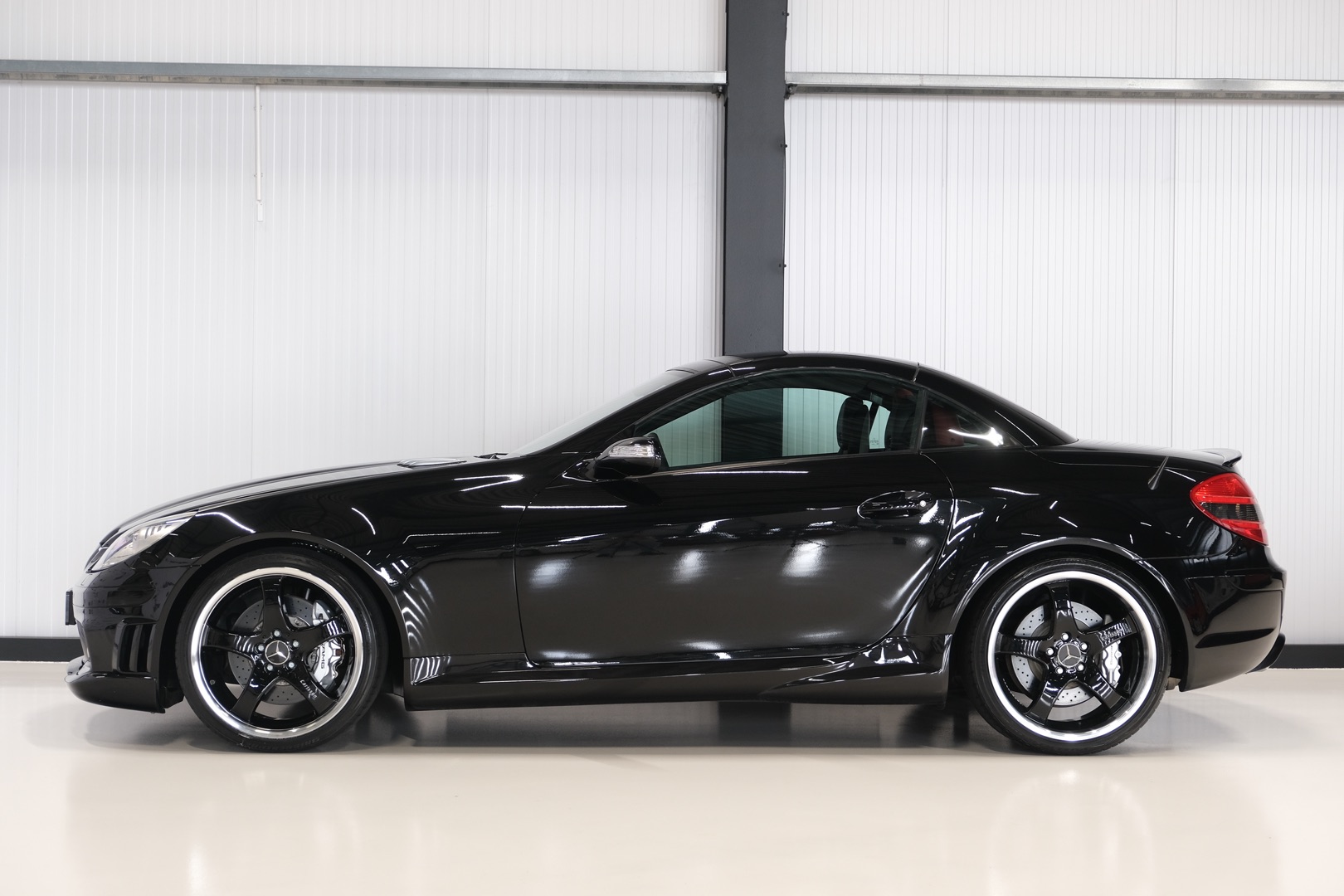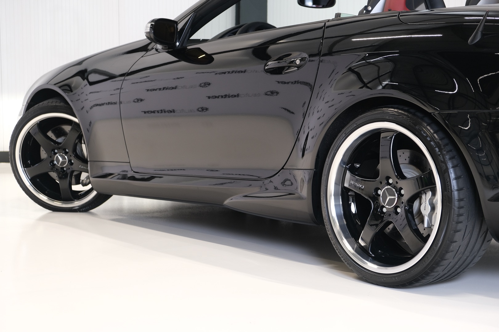 Now in stock: this 2005 Mercedes-Benz SLK 55 AMG Roadster R171 with an original mileage of only 39,702 km. Finished in 197 Obsidian Black metallic with 857 black/red leather interior and equipped with a Lorinser package. Originally delivered new in Japan and registered in the Netherlands several years ago. Entirely in first paint and in excellent condition.