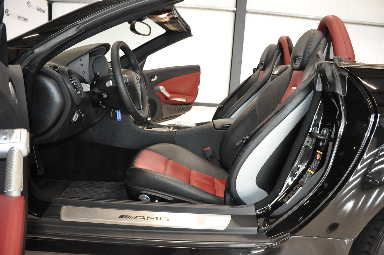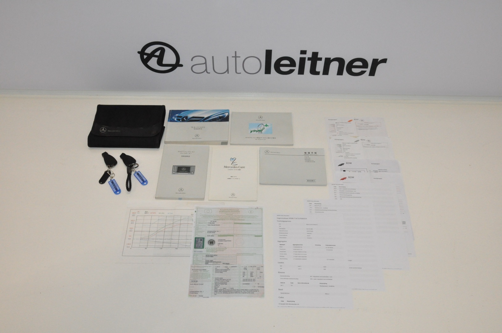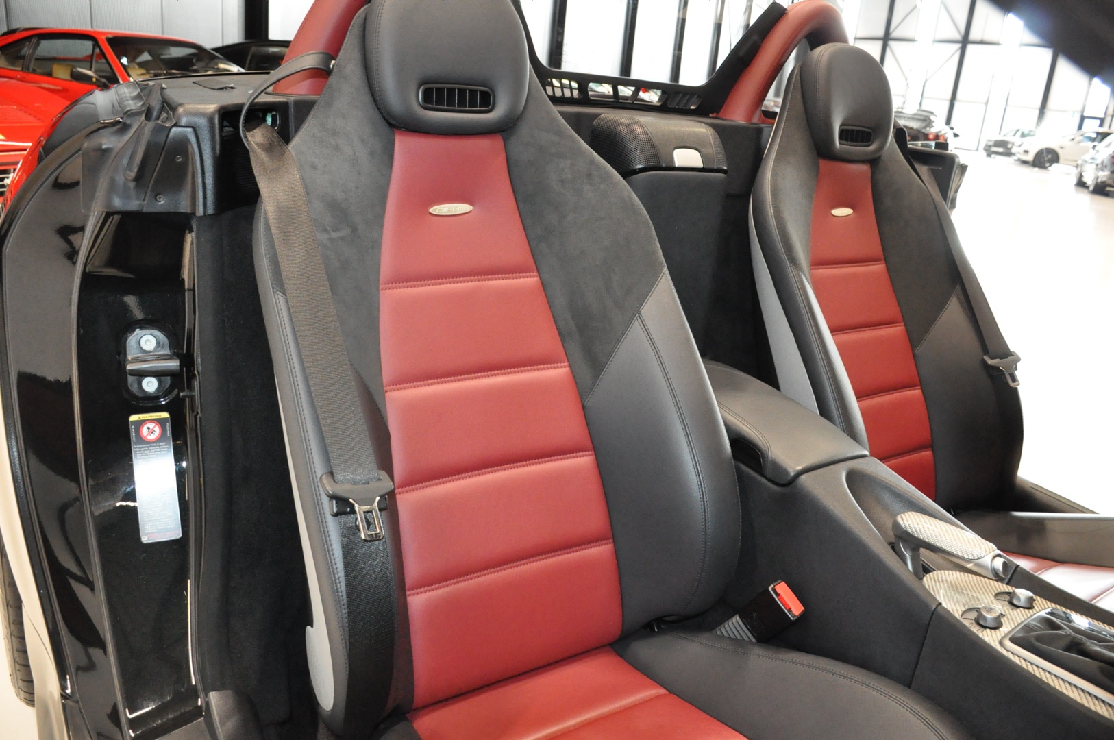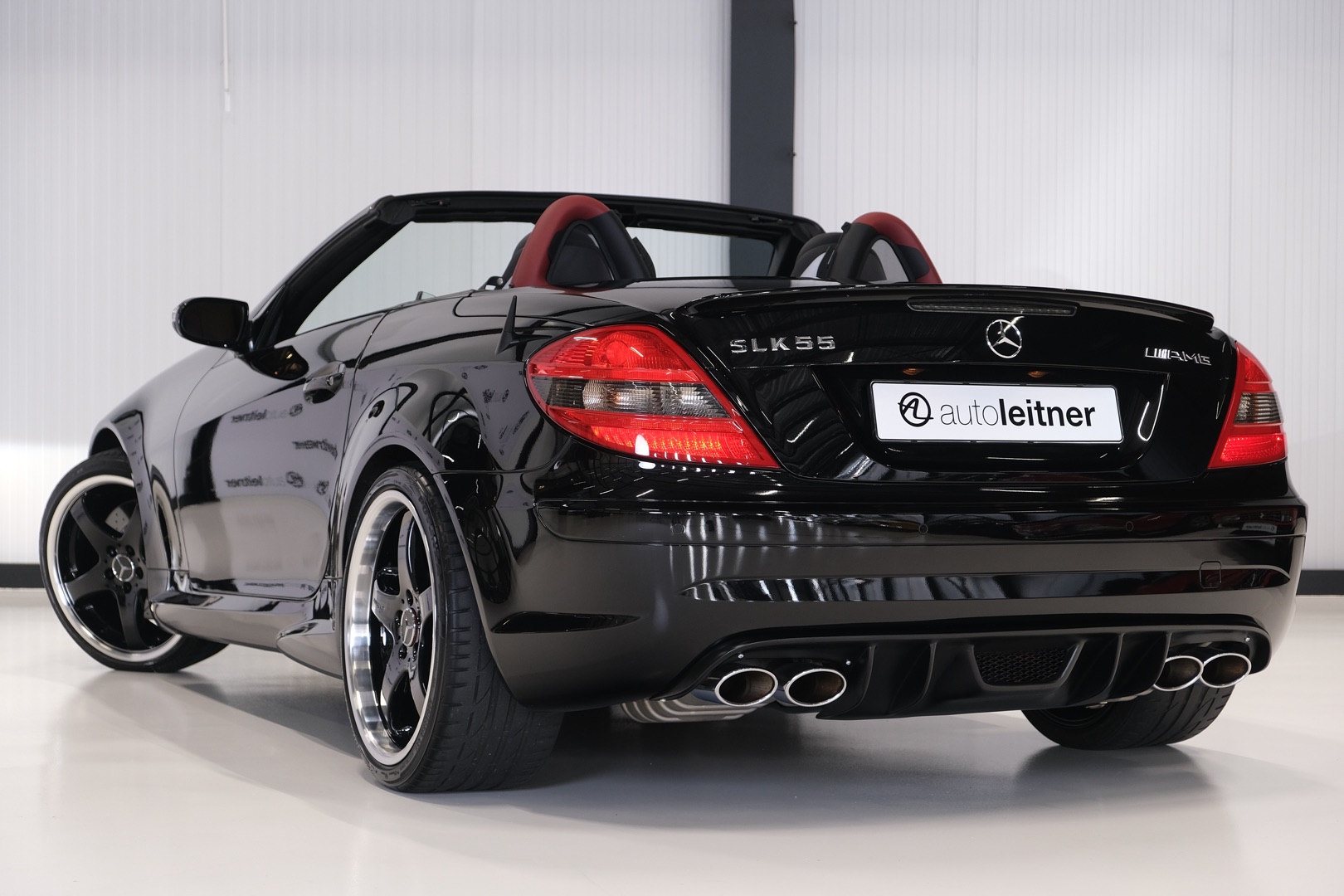 Now in stock: this 2005 Mercedes-Benz SLK 55 AMG Roadster R171 with an original mileage of only 39,702 km. Finished in 197 Obsidian Black metallic with 857 black/red leather interior and equipped with a Lorinser package. Originally delivered new in Japan and registered in the Netherlands several years ago. Entirely in first paint and in excellent condition.