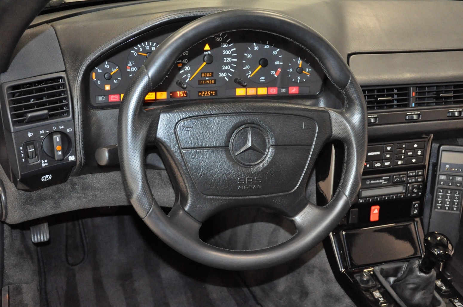 Uniek in zijn soort, deze 1994 Mercedes-Benz SL 3.6-24 BRABUS Roadster R129; slechts eenmaal geproduceerd in deze specificatie met handgeschakelde transmissie. BRABUS heeft deze SL volledig aangepakt. Voorzien van de 3.6 6-cilinder motor met 285 pk. Daarbij de handgeschakelde 5-bak met sportkoppeling. BRABUS sportonderstel, BRABUS volledig uitlaatsysteem, 18 inch Monoblock II velgen met wielhart in wagenkleur, BRABUS voor- en achterbumper. Het interieur is geheel gezet in BRABUS Bio-Mastiek volleder; dus ook het dashboard, A-zuilen, dakhemel hardtop, afdekking cabrioletkap, rolbeugel, etc. Afkomstig van een echte liefhebber uit Duitsland die de SL gekoesterd heeft. Gehele historie aantoonbaar inclusief BRABUS aankooprekeningen. Origineel slechts 111.438 km. A1 topconditie.