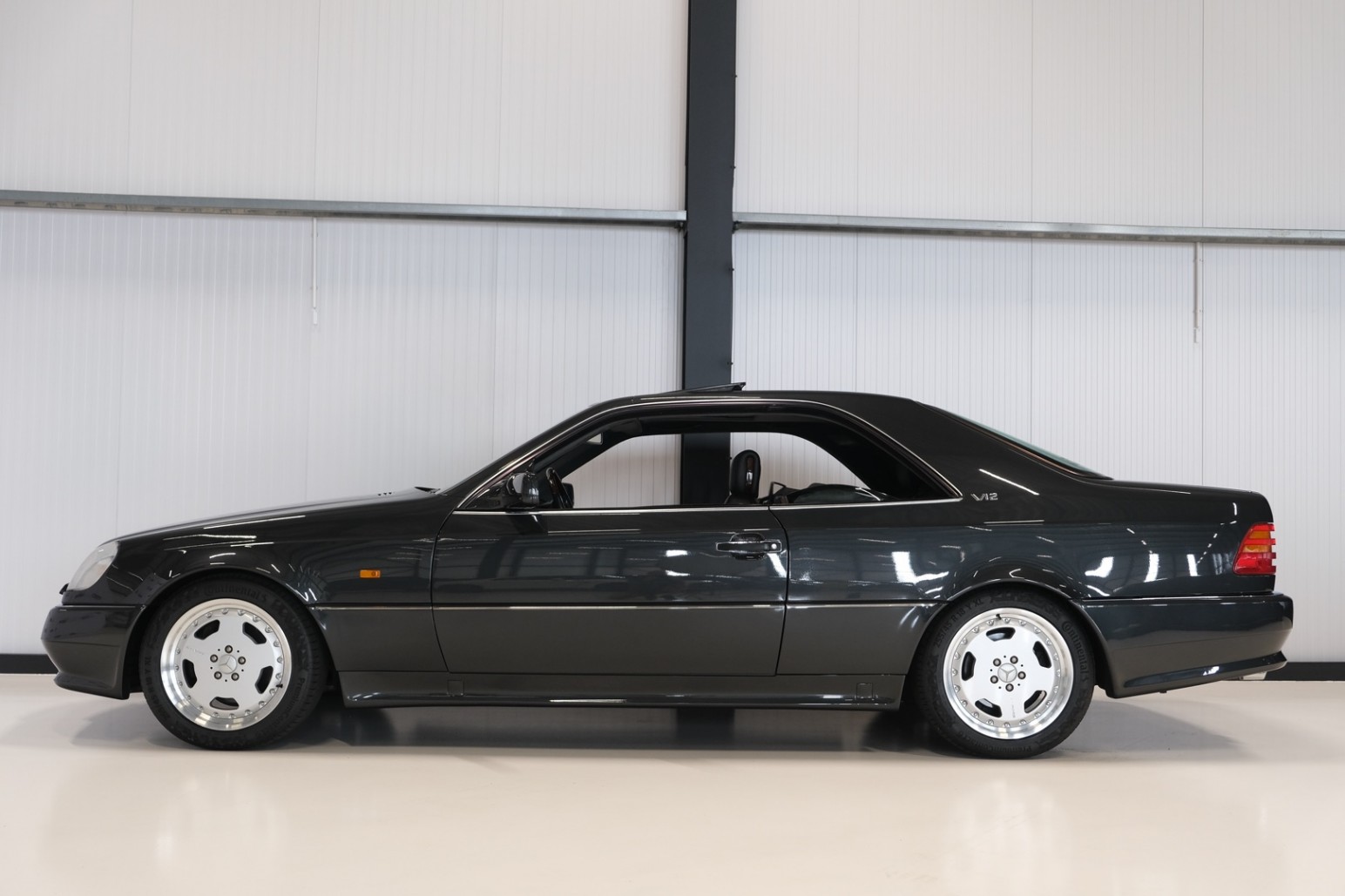 Verzamelaarsexemplaar deze 1995 Mercedes-Benz S600 Coupe 6.0 AMG C140 met aantoonbaar slechts 67.303 km origineel. Goed uitgevoerd in de kleurstelling 199 Blauschwarz metallic met 561 leder Exclusive zwart/grijs. Destijds voorzien van een volledig AMG pakket inclusief AMG power package naar 324 Kw - 441 Ps. In eerste lak, volledig MB dealer onderhouden en in topconditie.