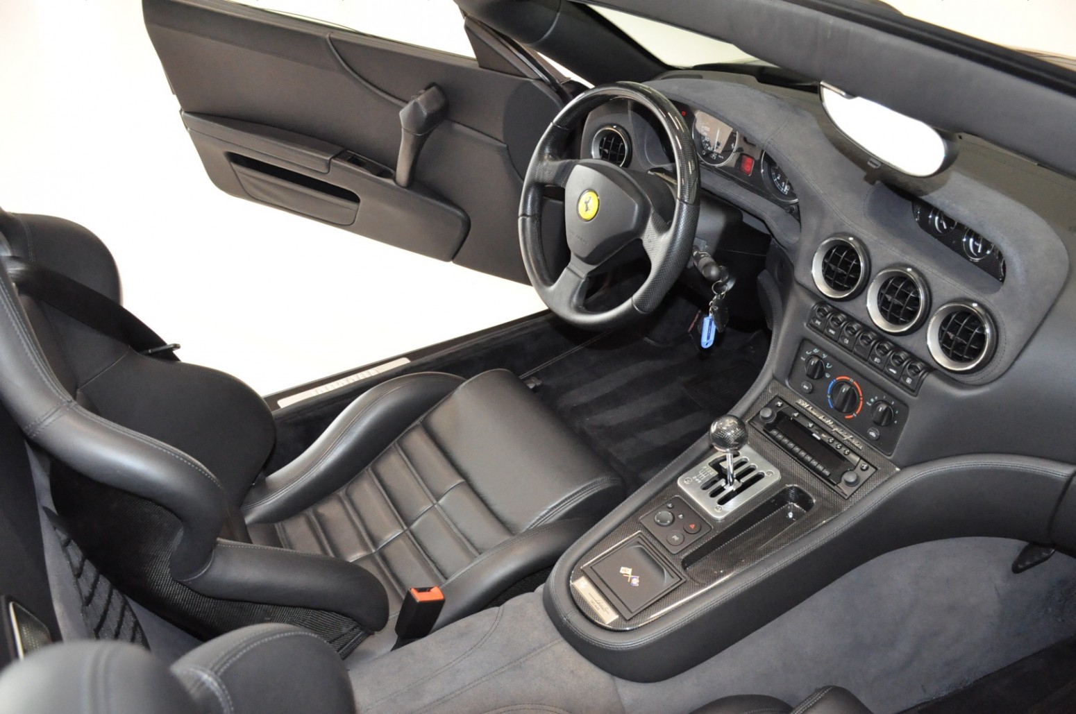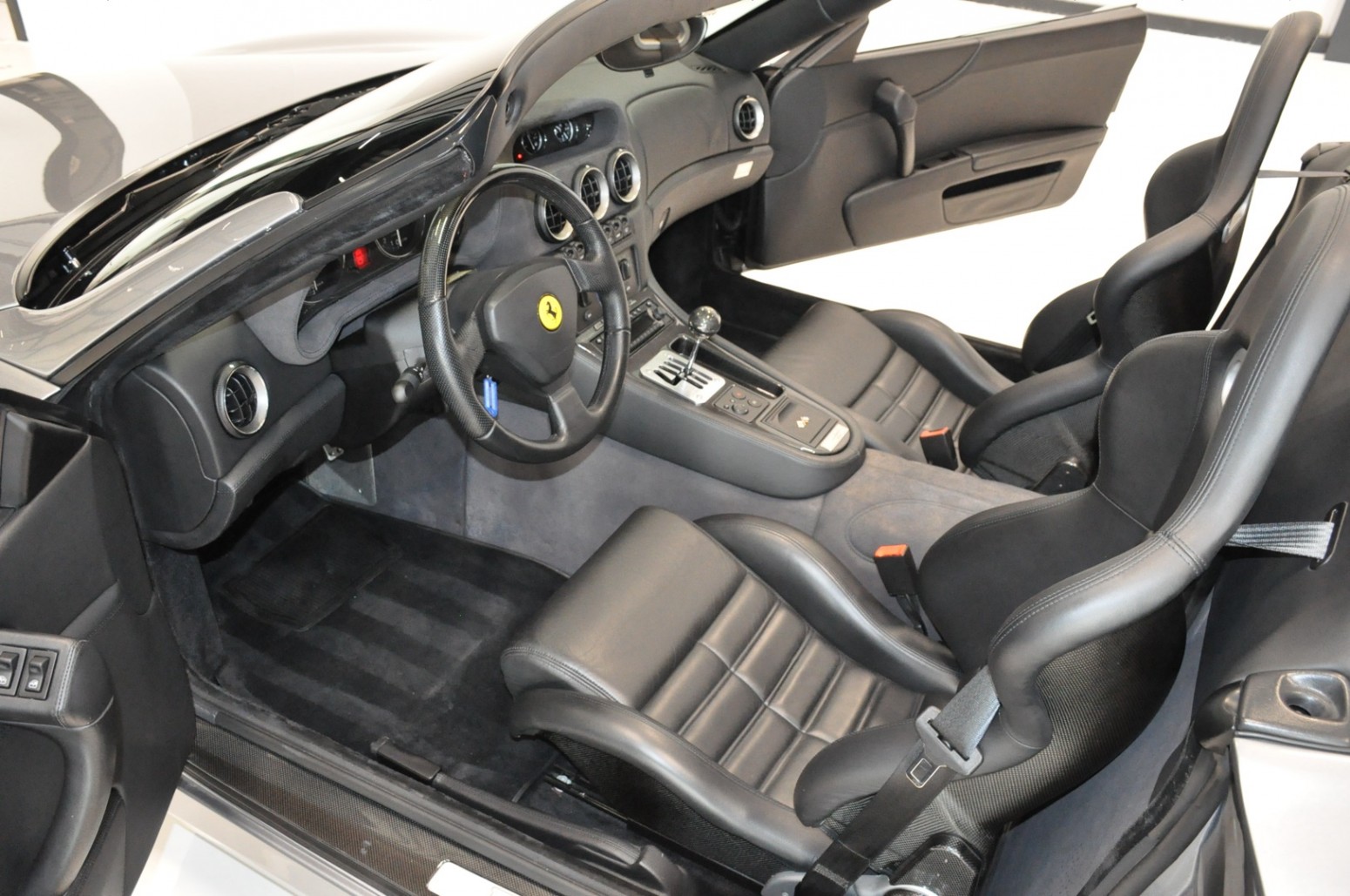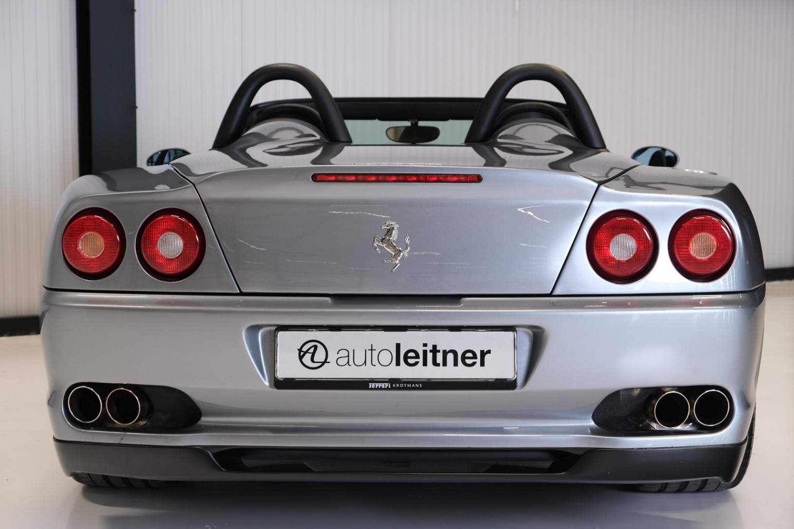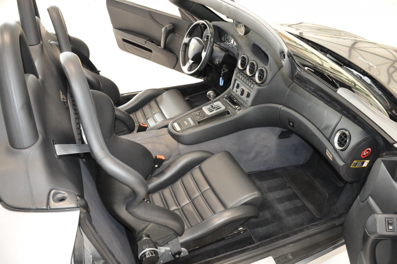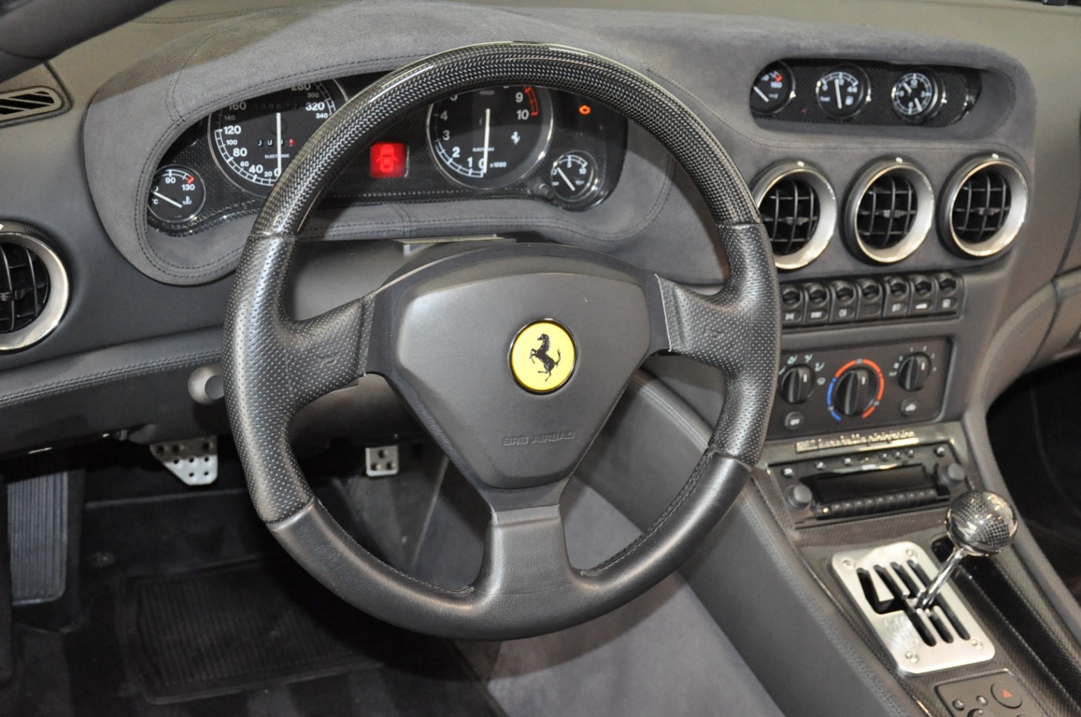 Afkomstig uit een verzameling: een zeer zeldzame Ferrari 550 Barchetta in de schitterende kleur Grigio Titanio. Klassiek gelijnde Ferrari met fijne rijeigenschappen. Dit exemplaar heeft een Michalak softtop waarmee men over de 200 km/u kan rijden (met het normale nooddakje kan max 120 mee gereden worden). Van dit dakje zijn maar een beperkt aantal gemaakt en wordt bij de auto geleverd net zoals de 2 originele carbon helmen. Duits geleverde Barchetta; nummer 380 van 448 stuks. Origineel slechts 9.672 km aantoonbaar en in topconditie.