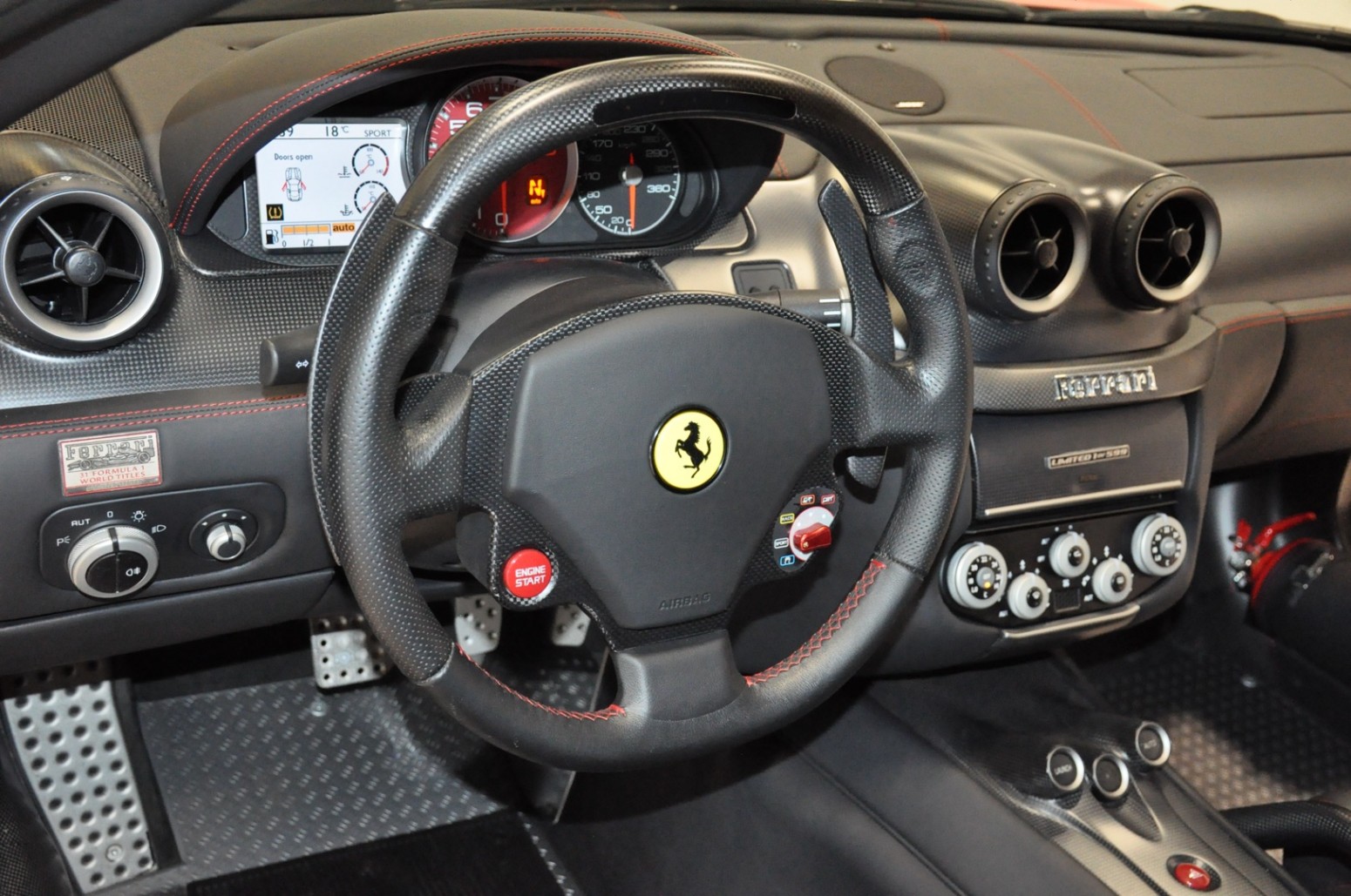 Een extreem fraaie 599 GTO met slechts 6.275 km origineel. Uitgevoerd in klassiek 322 Rosso Corsa met Nero vollederen interieur. Zeldzame en gezochte opties aanwezig zoals de carbon motorruimte, de rolkooi uitgevoerd in leder, Bose geluidssysteem en 4-punts gordels. Het betreft keurig onderhouden GTO van de eerste eigenaar. Van voor tot achter in eerste lak en zonder noemenswaardige gebruikssporen. Ferrari Classiche rode boek aanwezig. A1 topconditie.