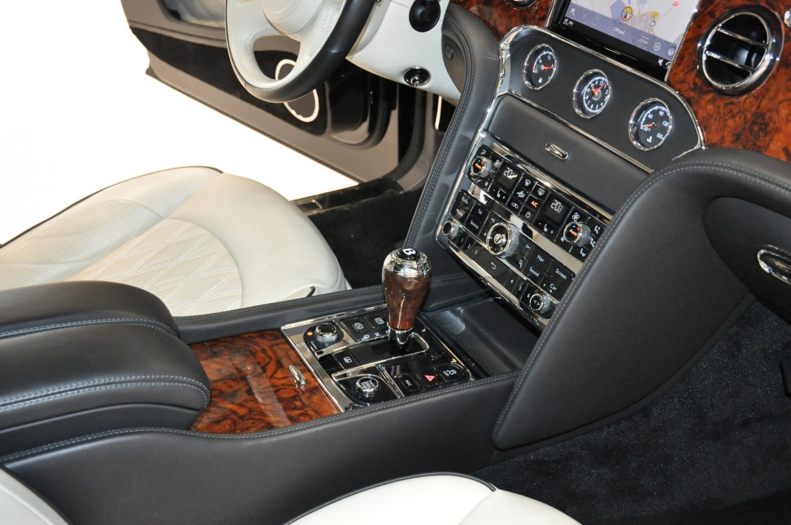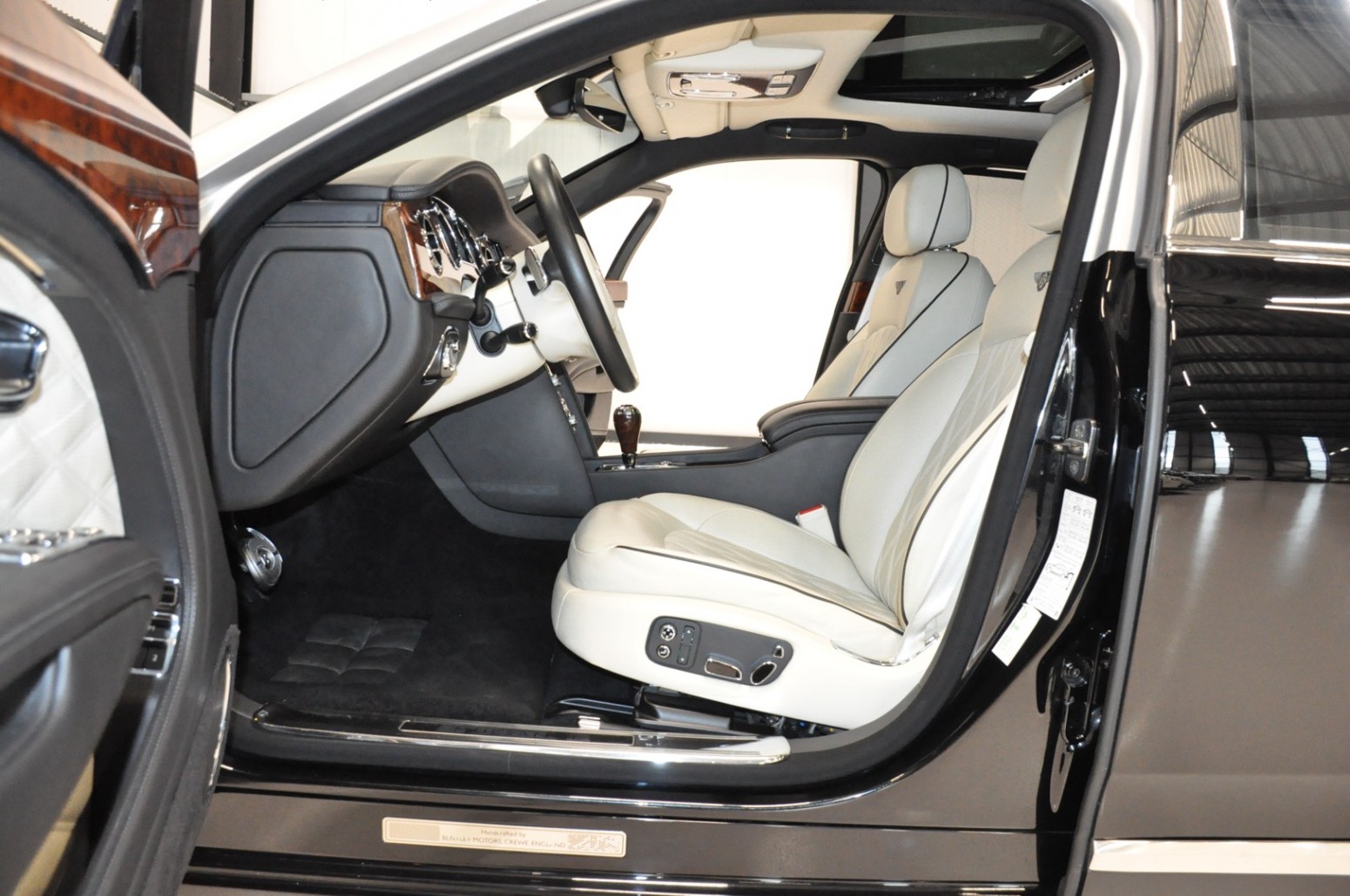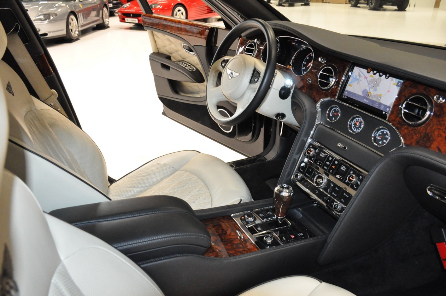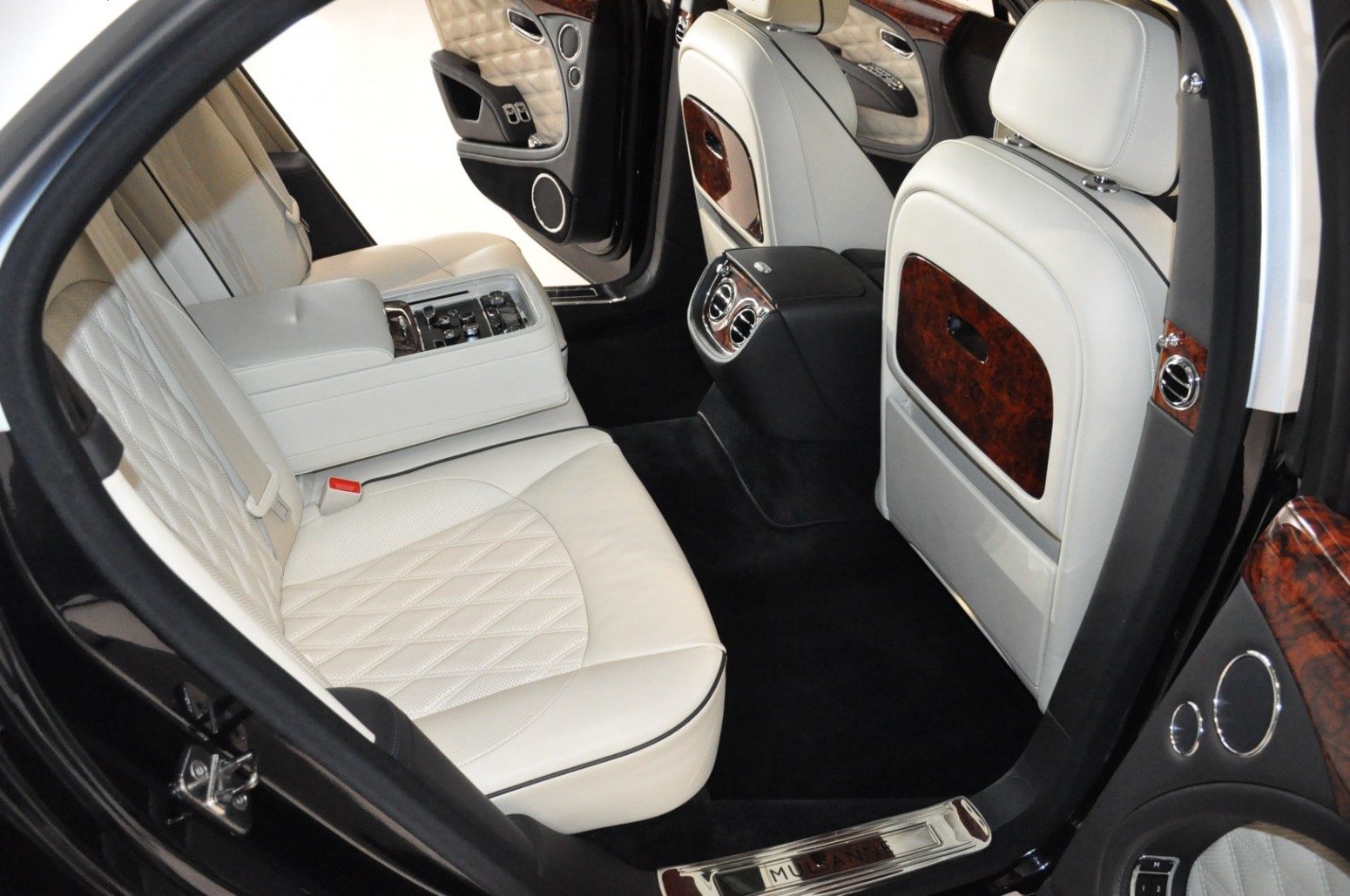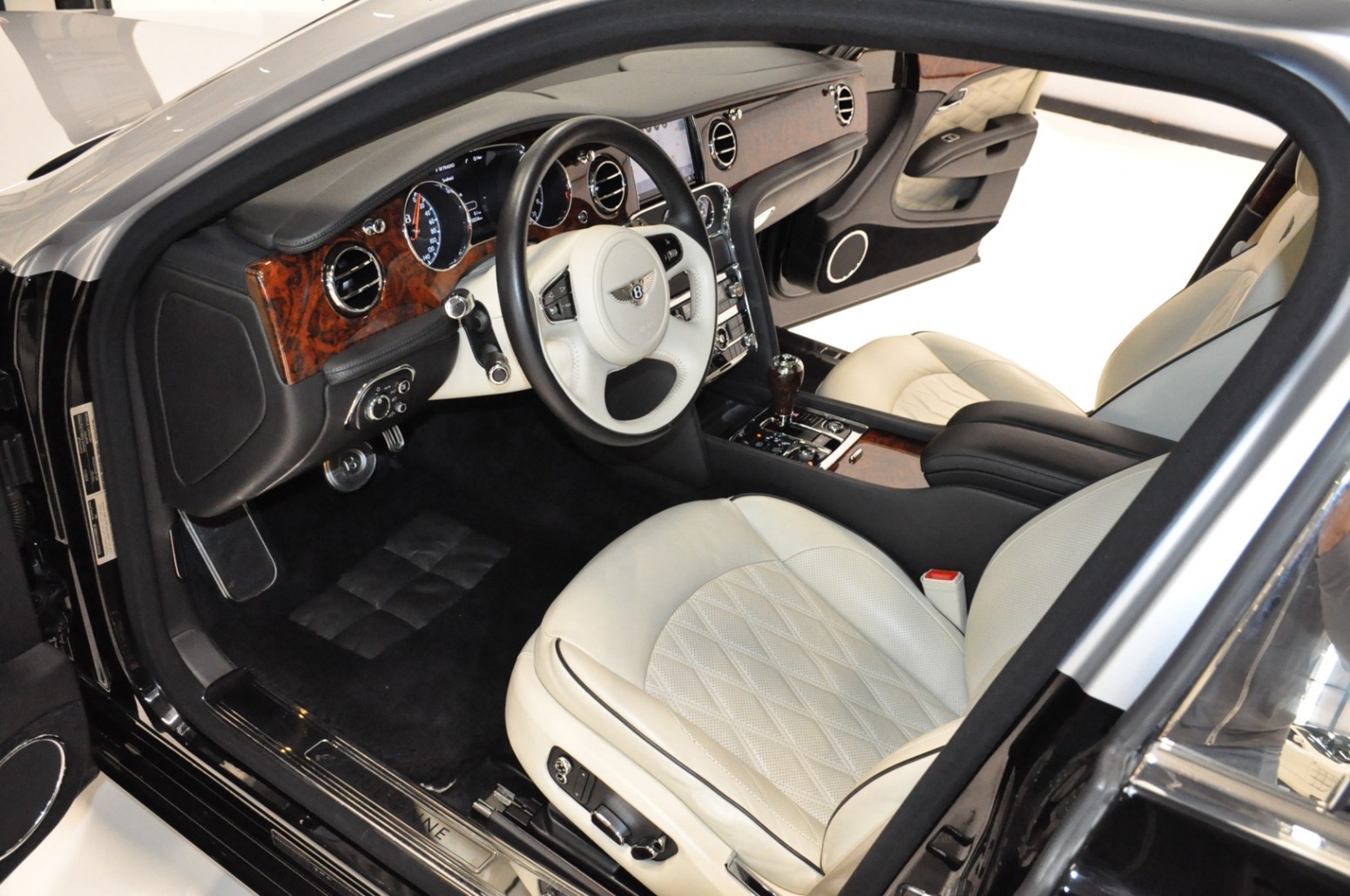 Uniek exemplaar, deze zeer fraai uitgevoerde facelift model 2017 Mulsanne Mulliner in L999 Special duopaint Moonbeam metallic over Beluga. Daarbij van binnen smaakvol in Champagne leder met zwarte bies en edelhout interieursierlijsten. Mooie opties aanwezig zoals het glazen dak, stoelmassage, -koeling, -verwarming met geheugen zowel voor als achter en meer. Origineel 52.536 km. Exportprijs 175.000,- euro.
