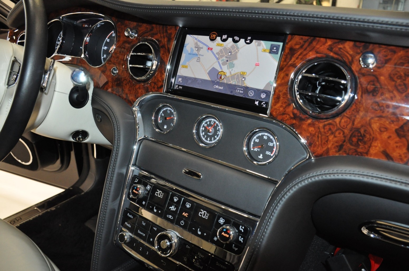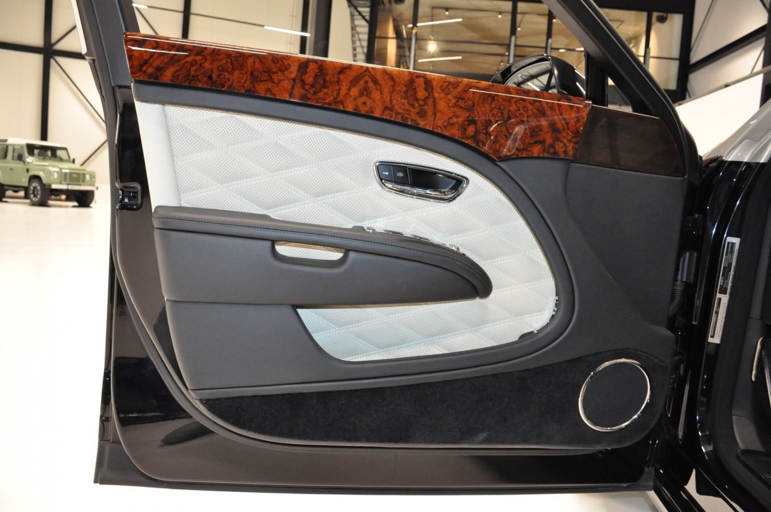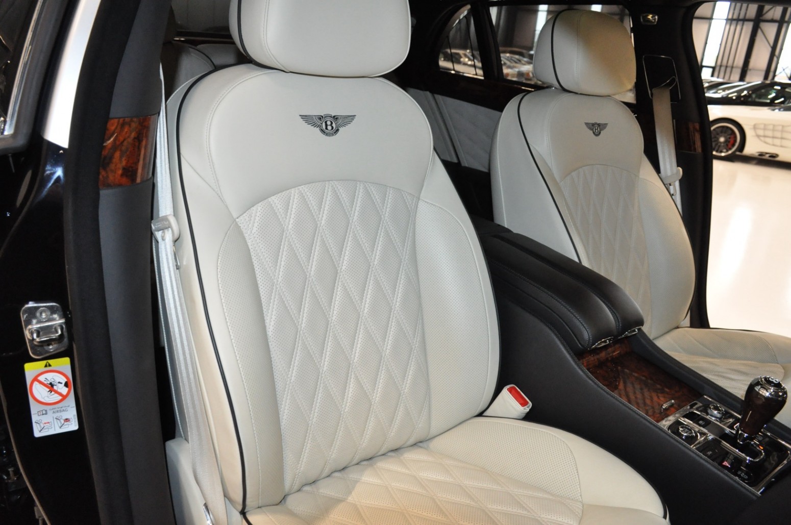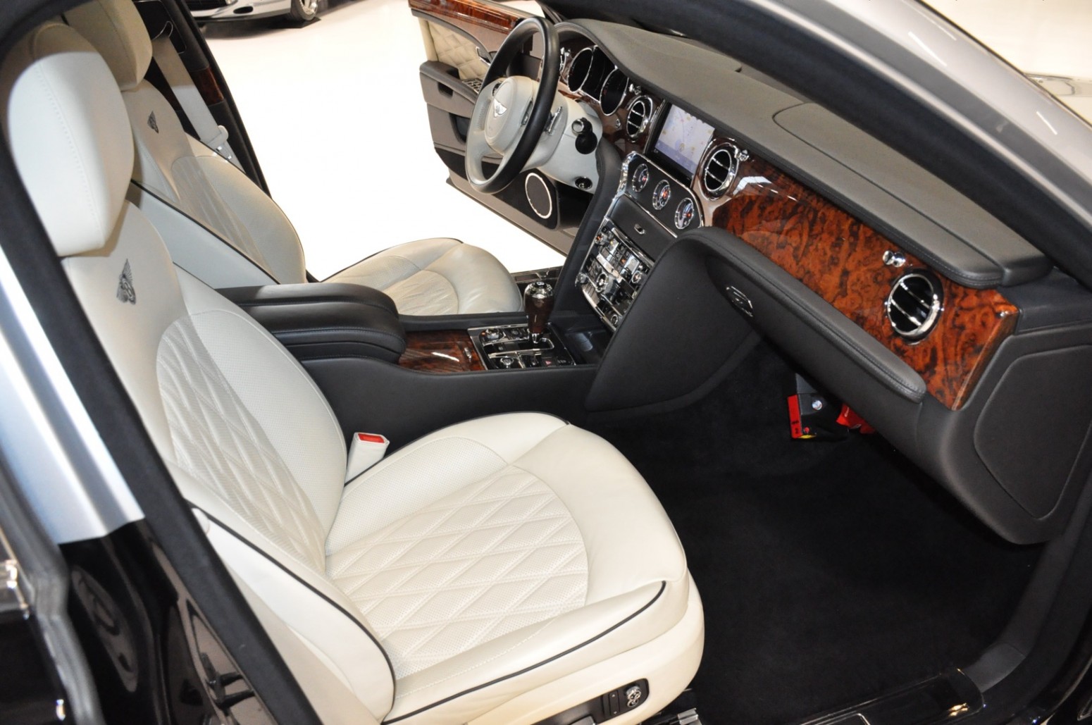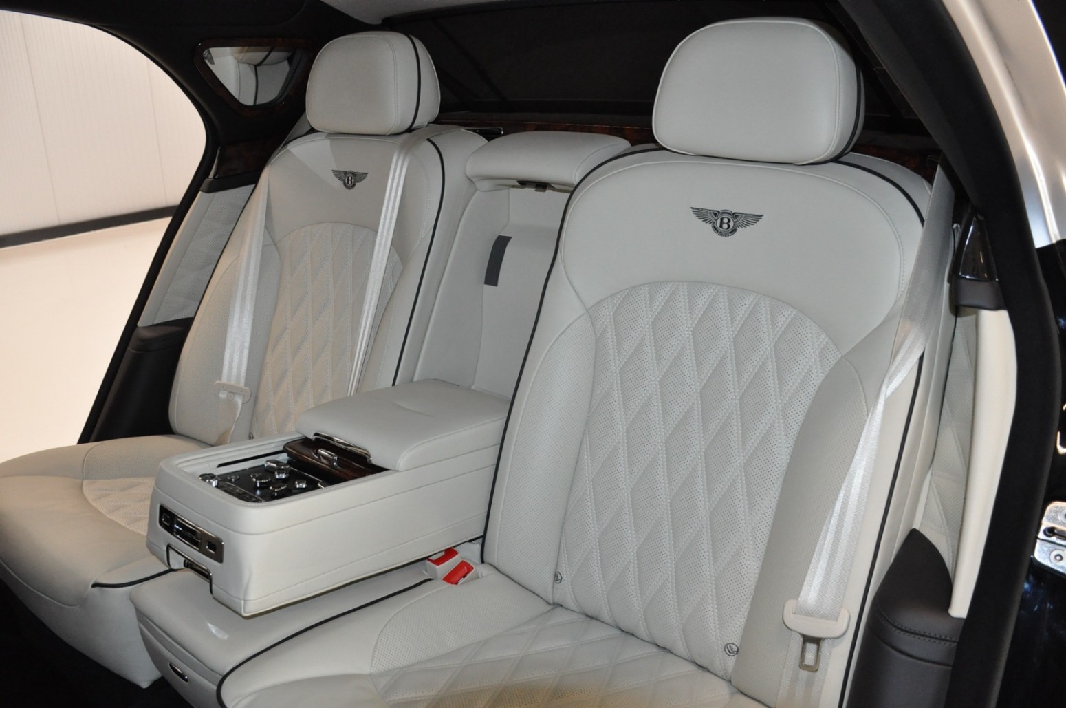 Uniek exemplaar, deze zeer fraai uitgevoerde facelift model 2017 Mulsanne Mulliner in L999 Special duopaint Moonbeam metallic over Beluga. Daarbij van binnen smaakvol in Champagne leder met zwarte bies en edelhout interieursierlijsten. Mooie opties aanwezig zoals het glazen dak, stoelmassage, -koeling, -verwarming met geheugen zowel voor als achter en meer. Origineel 52.536 km. Exportprijs 175.000,- euro.