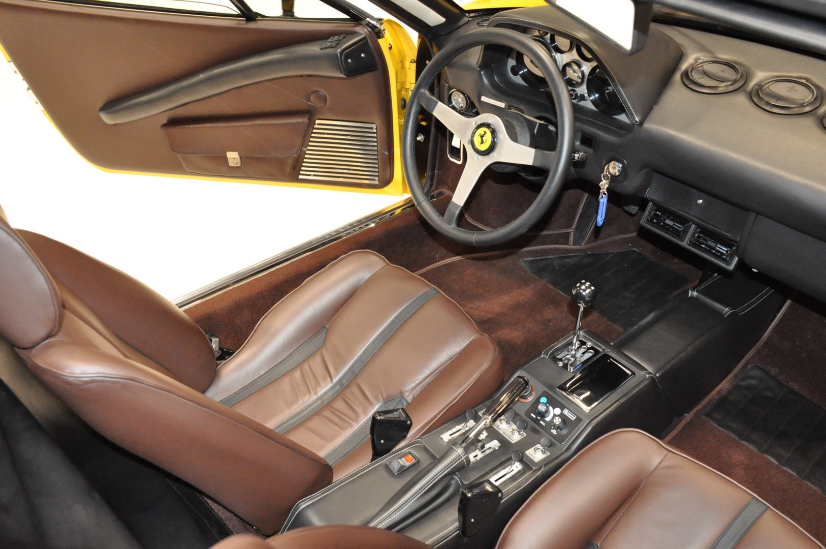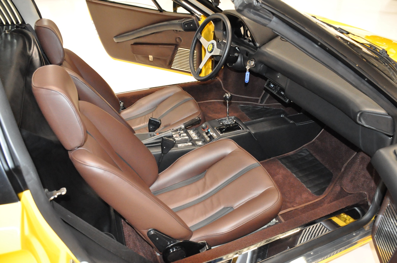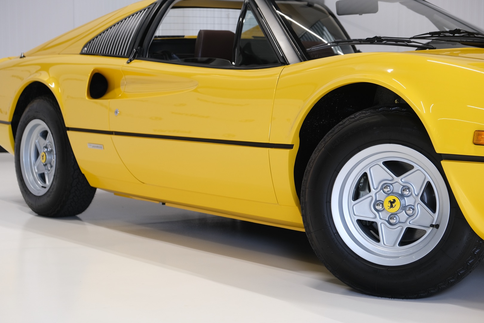 Een volledig gerestaureerde 1979 Ferrari 308 GTS in een schitterende kleurstelling; Giallo met bruin lederen interieur. Dit exemplaar is geheel tot ieder schroefje nieuw en in de hoogste kwaliteitsklasse; Classic Data 1 verslag aanwezig.