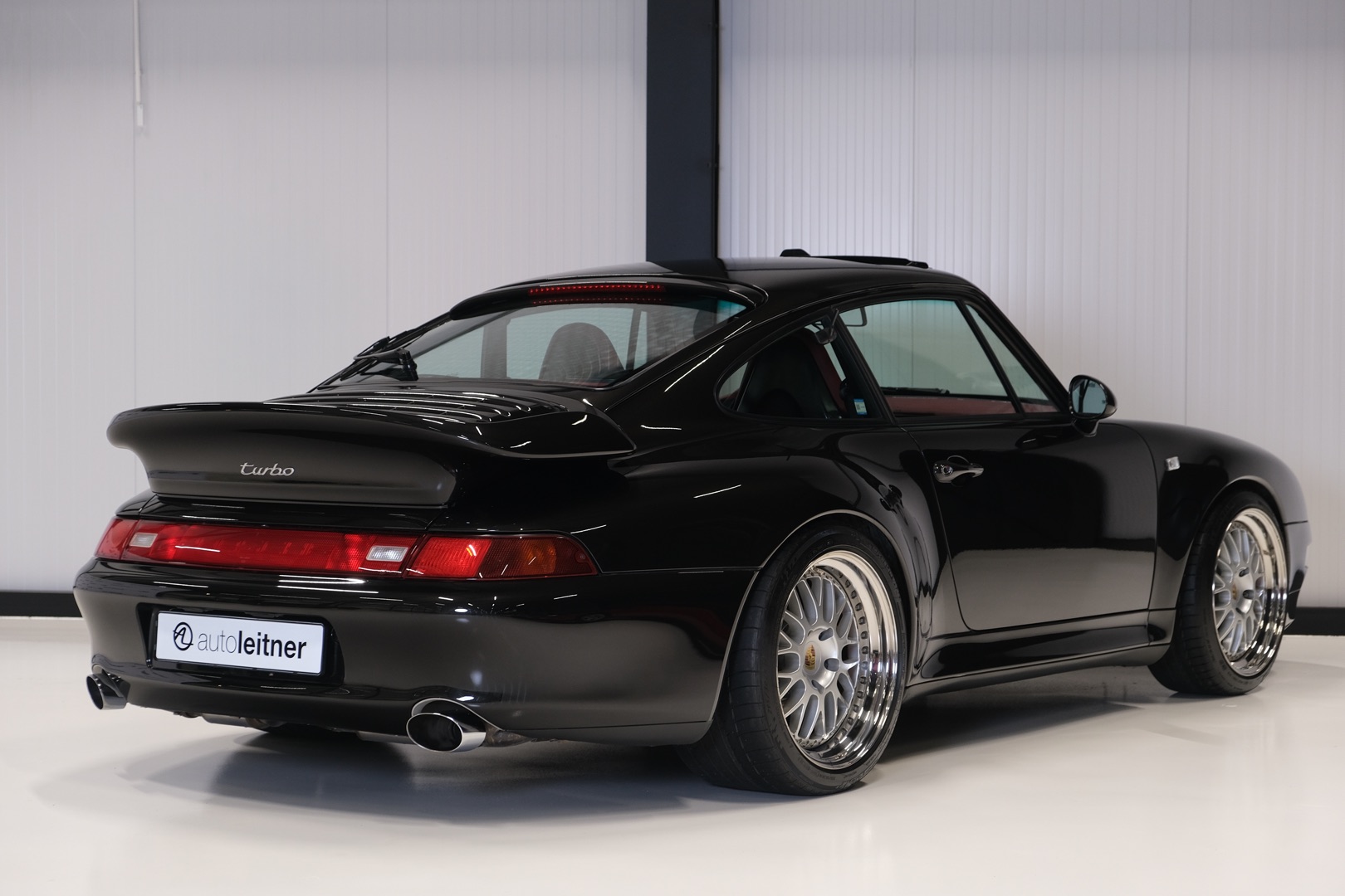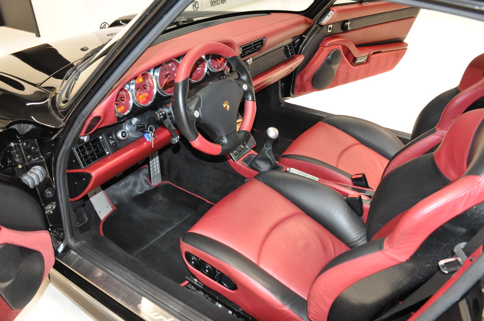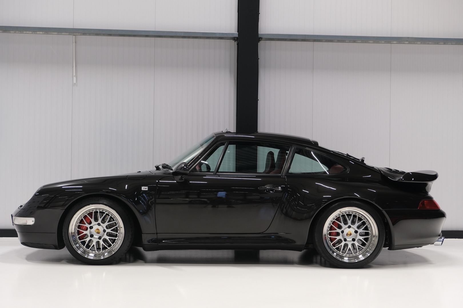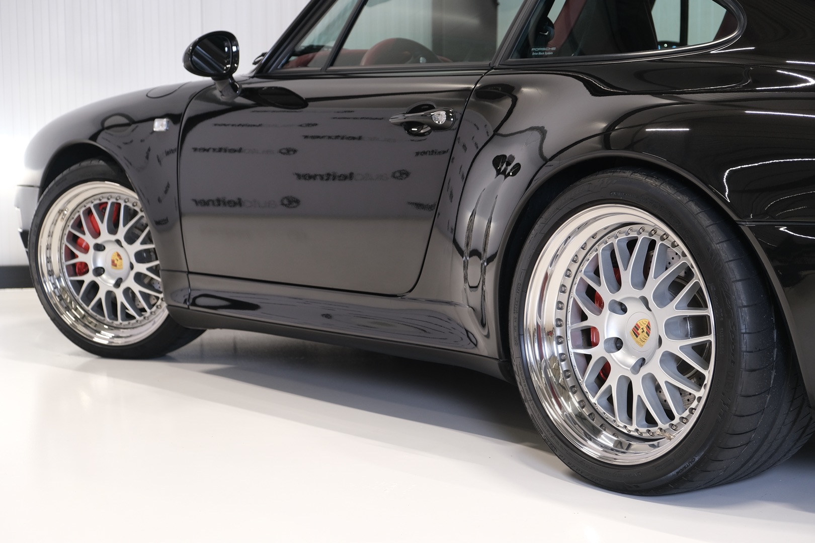 Een kraakheldere 1996 Porsche 993 Turbo met slechts aantoonbaar 59.202 km origineel. Destijds nieuw geleverd in Zwitserland en afkomstig uit een verzameling. Schitterend uitgevoerd in L744 Schwarz metallic met zwart/rood lederen interieur. Mooie complete uitvoering en naderhand aantal modificaties gehad zoals de velgen, onderstel, carbon stabilisatiestang, carbon en aluminium interieurdelen en meer. Van voor tot achter in smetteloze conditie. Exportprijs zonder BTW is 239.500,- euro.
