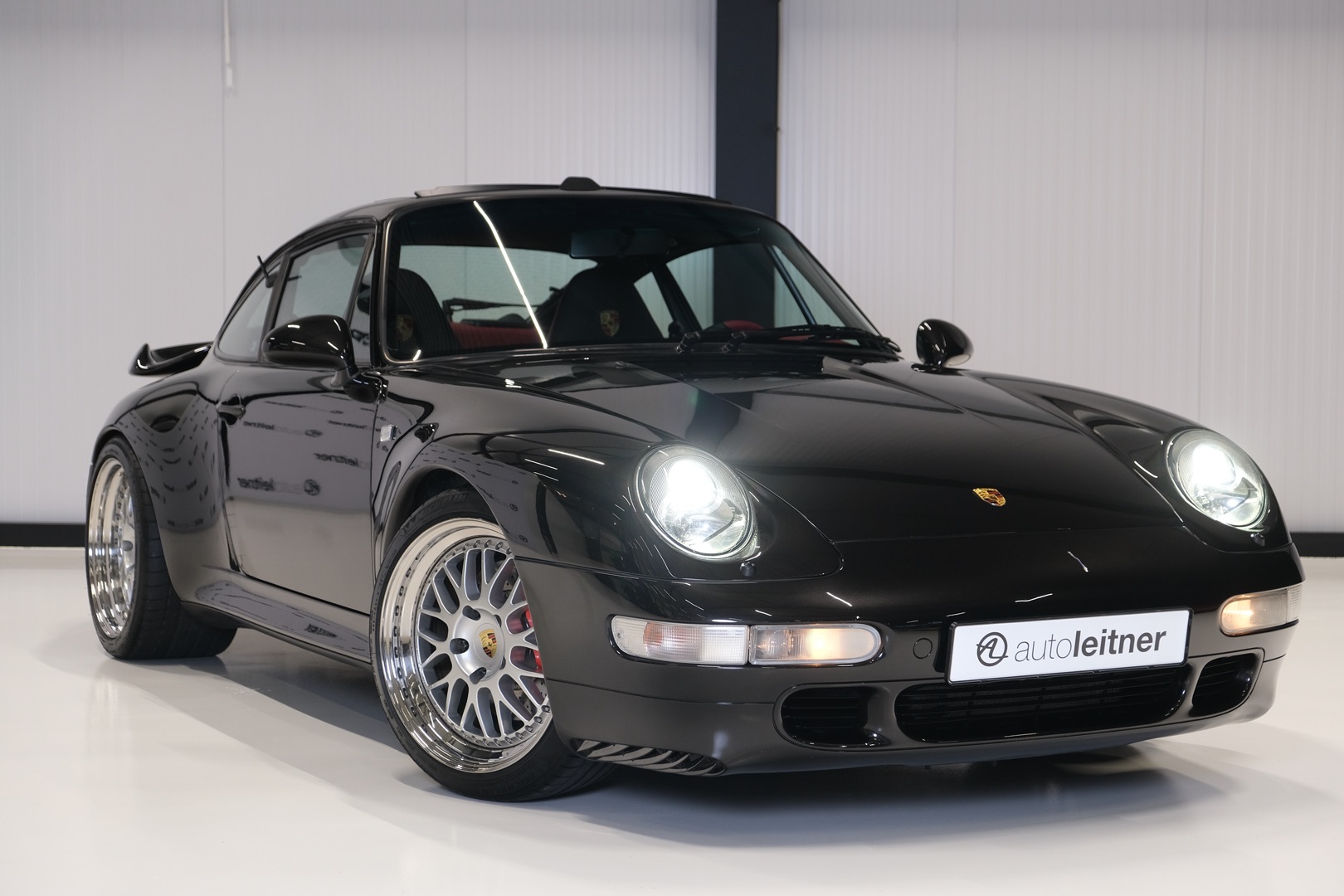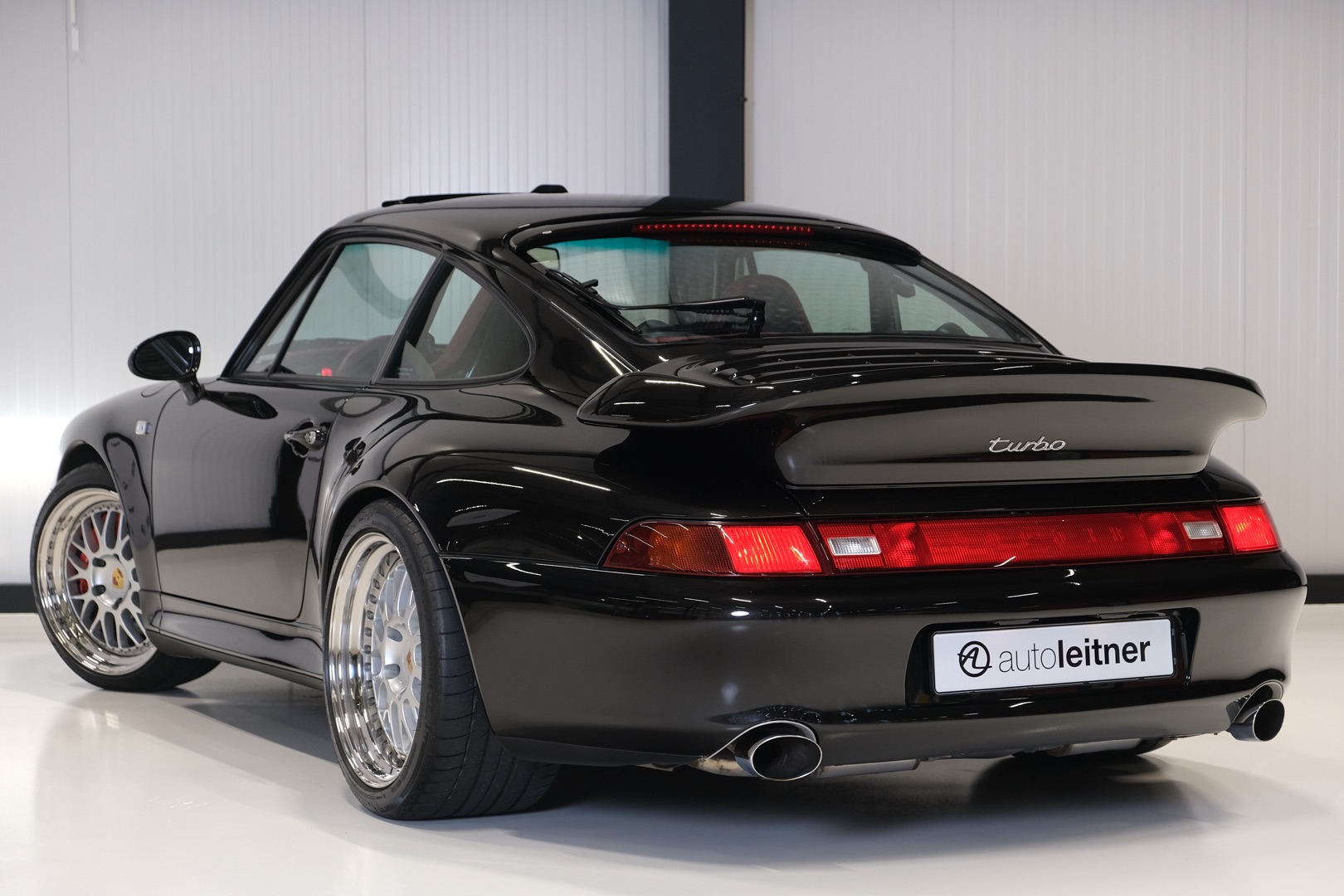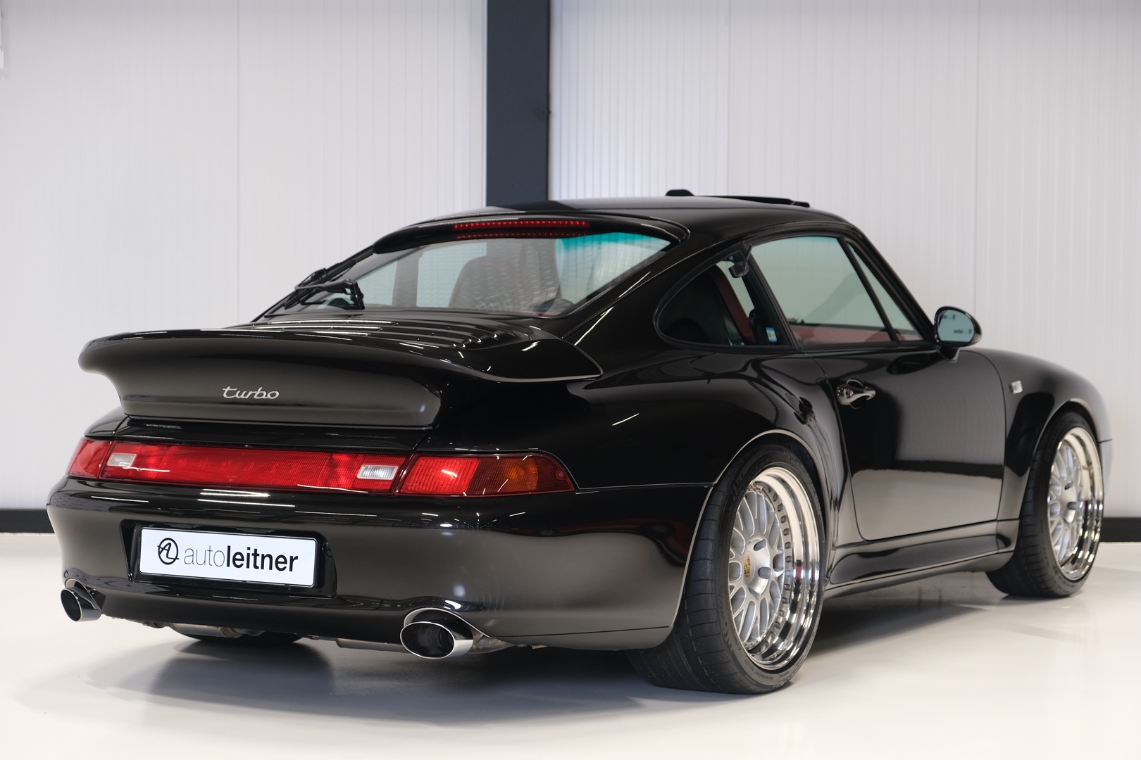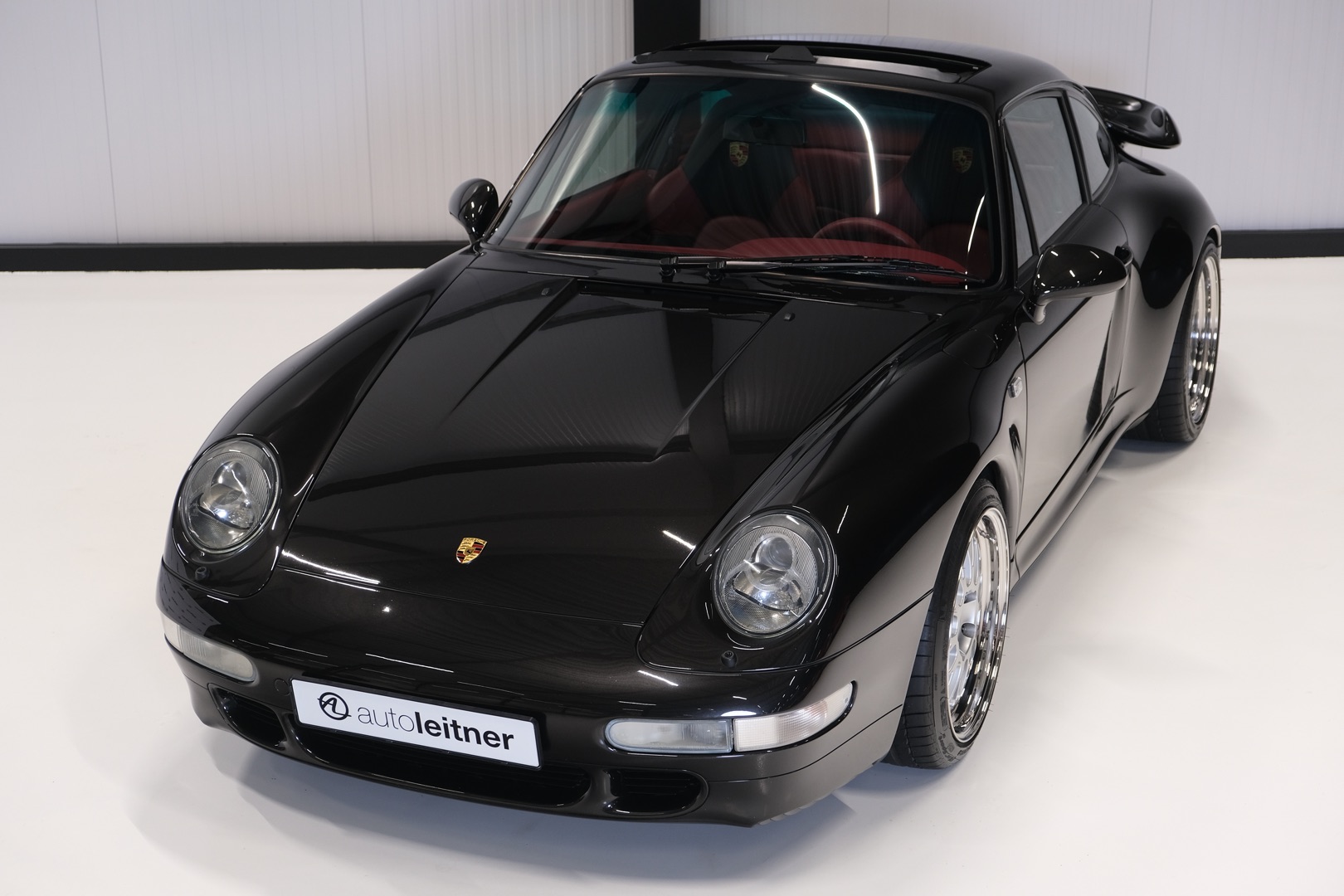 Een kraakheldere 1996 Porsche 993 Turbo met slechts aantoonbaar 59.202 km origineel. Destijds nieuw geleverd in Zwitserland en afkomstig uit een verzameling. Schitterend uitgevoerd in L744 Schwarz metallic met zwart/rood lederen interieur. Mooie complete uitvoering en naderhand aantal modificaties gehad zoals de velgen, onderstel, carbon stabilisatiestang, carbon en aluminium interieurdelen en meer. Van voor tot achter in smetteloze conditie. Exportprijs zonder BTW is 239.500,- euro.