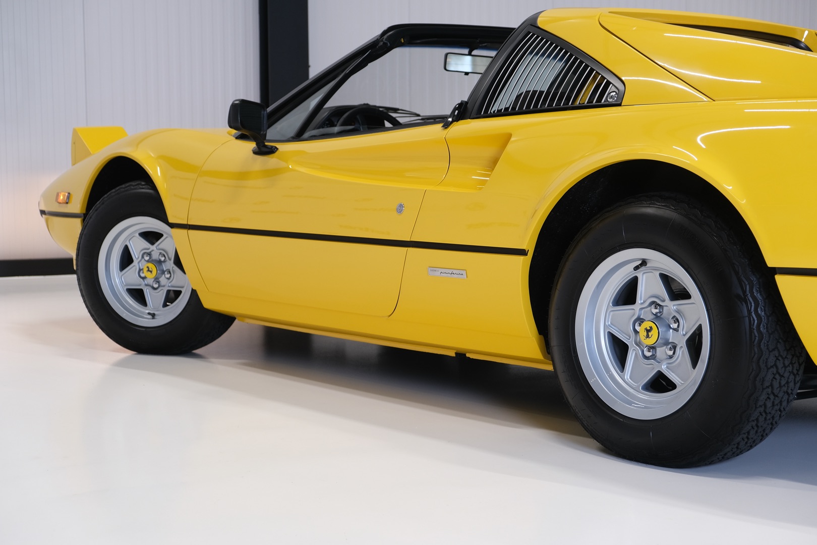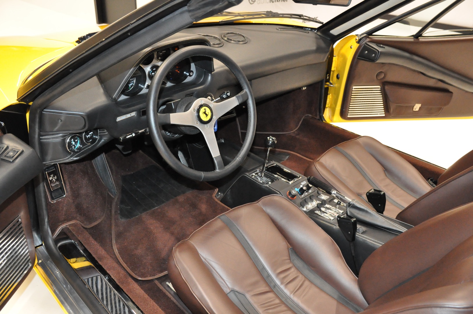 Een volledig gerestaureerde 1979 Ferrari 308 GTS in een schitterende kleurstelling; Giallo met bruin lederen interieur. Dit exemplaar is geheel tot ieder schroefje nieuw en in de hoogste kwaliteitsklasse; Classic Data 1 verslag aanwezig.