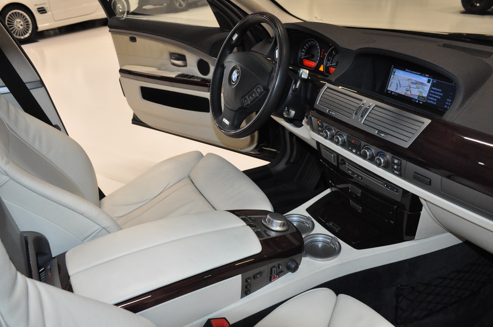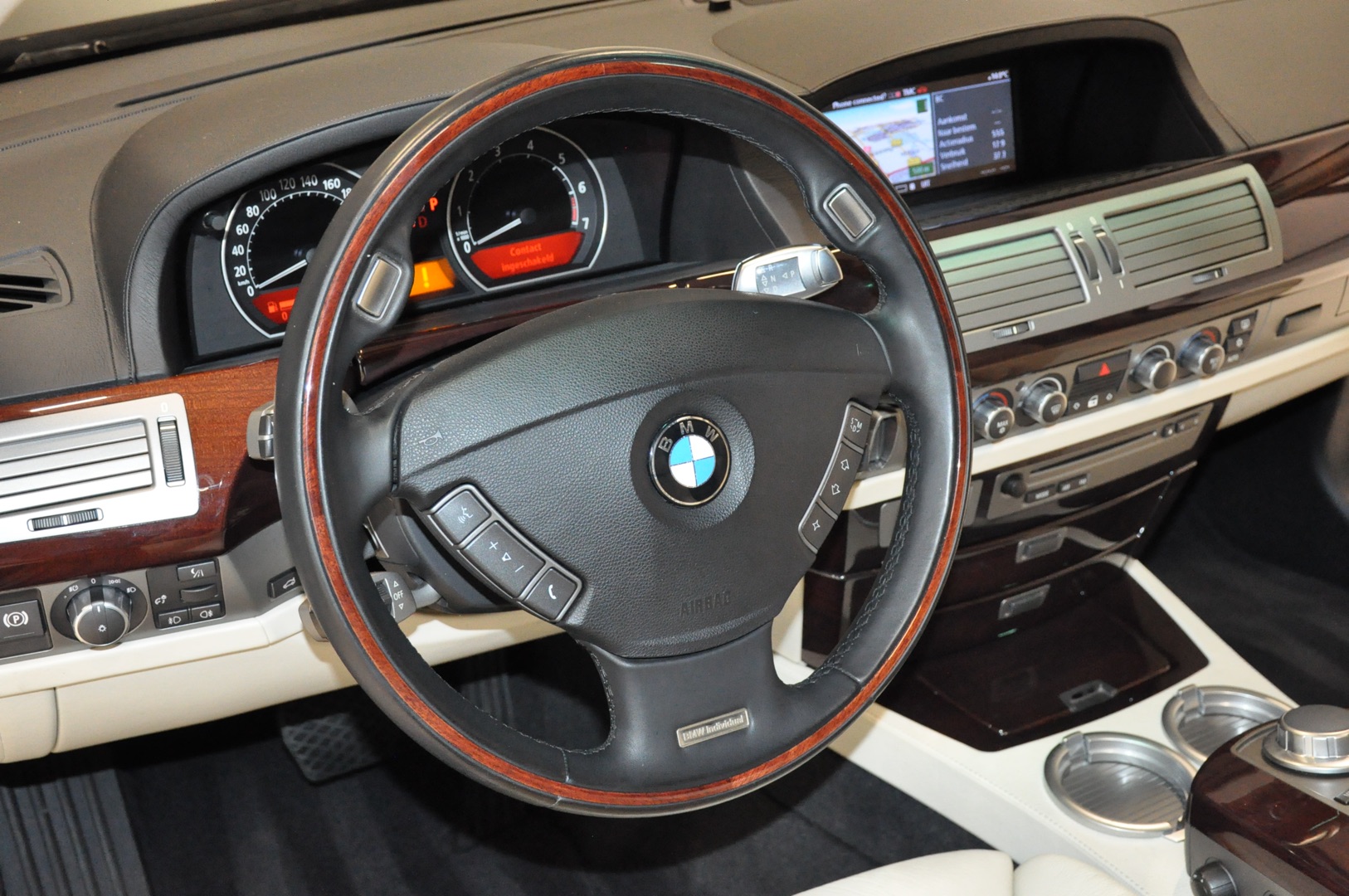 Een prachtig mooi samengestelde BMW 7-serie E65 uit de facelift reeks. Een fraaiere kleurstelling is nauwelijks denkbaar; 490 Sonderlackierung Rubinschwarz metallic met een Z1XX Individual Champagne lederen interieur. Compleet uitgevoerd met oa Adaptive Drive, Night Vision, stoelmassage voor en achter, comfortstoelen voor en achter, adaptieve cruise control, DVD scherm achterin en meer. Direct afkomstig van de Nederlandse eerste eigenaar. Aantoonbaar slechts 87.954 km origineel.