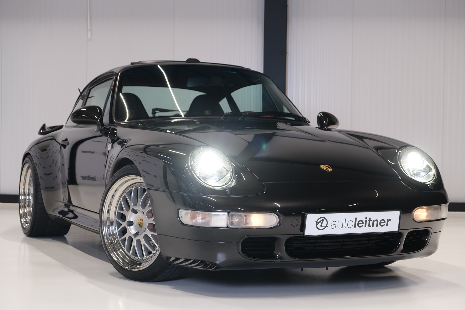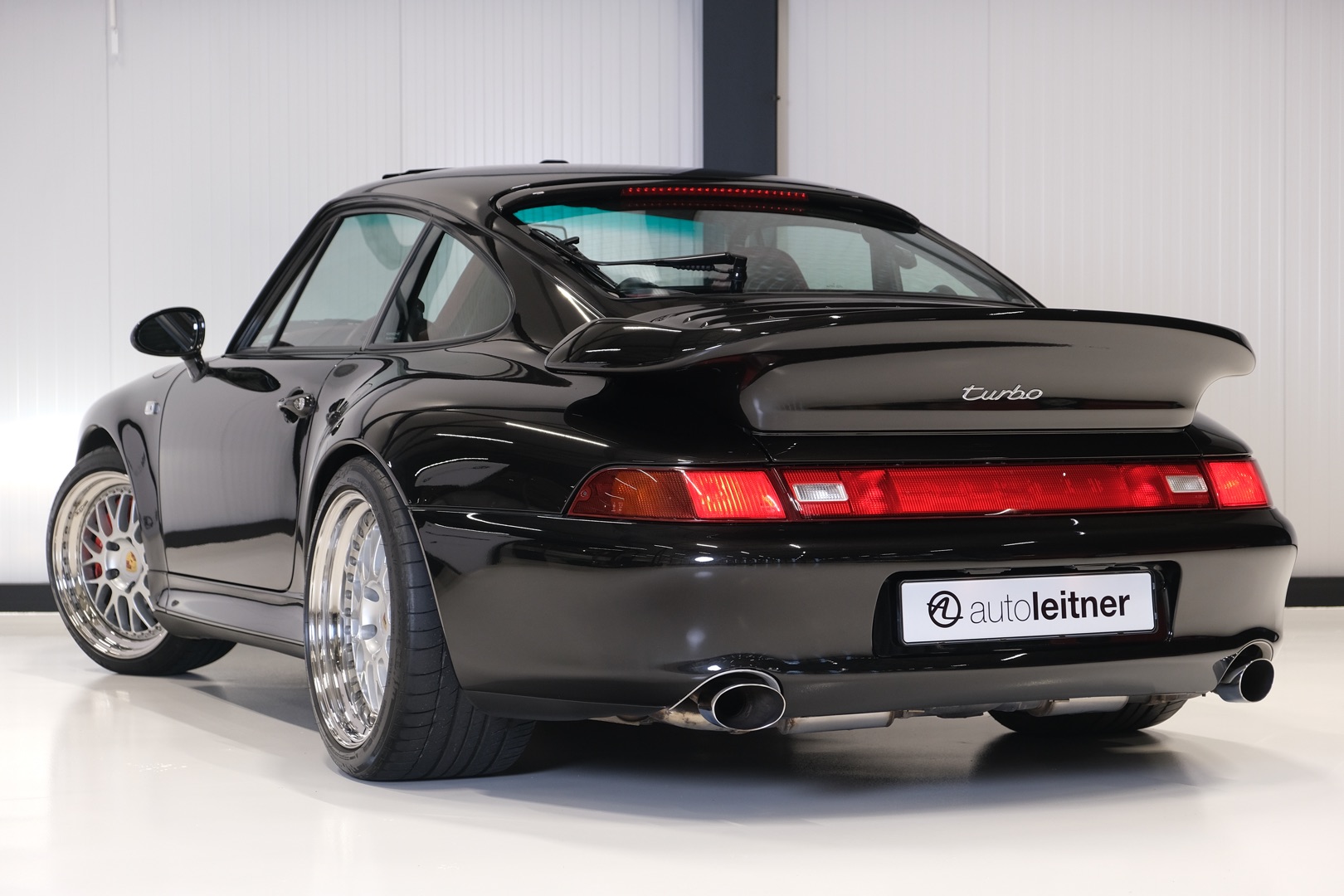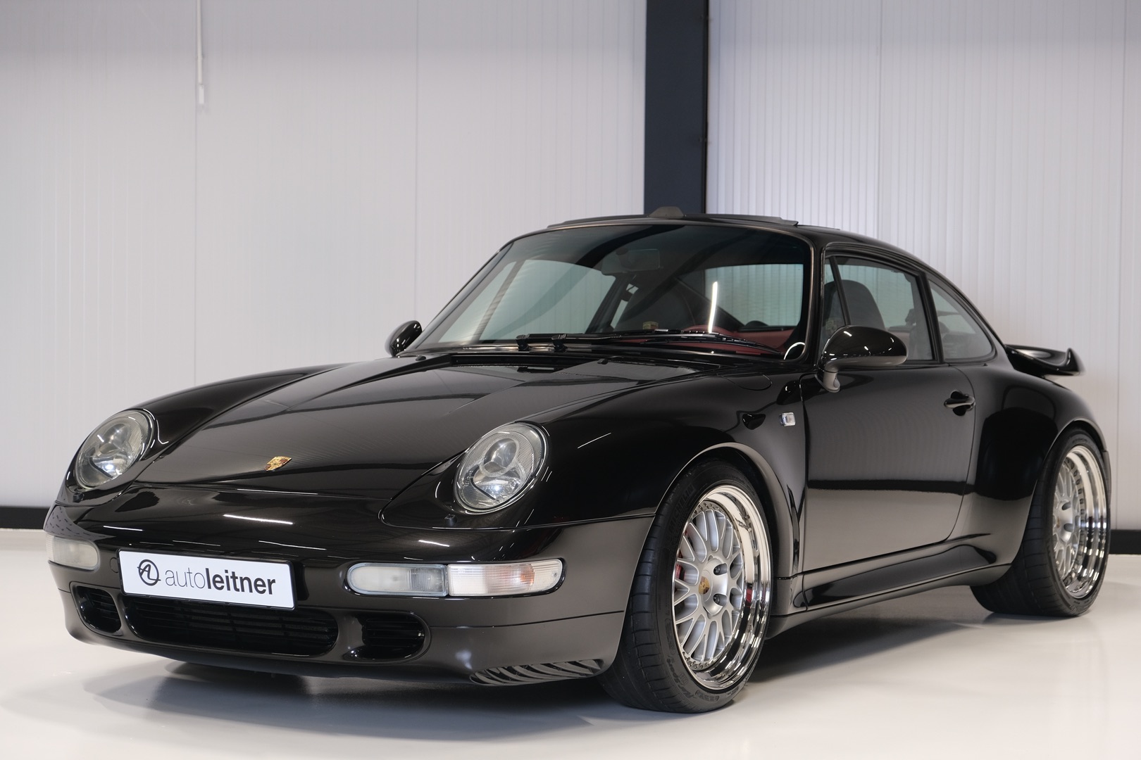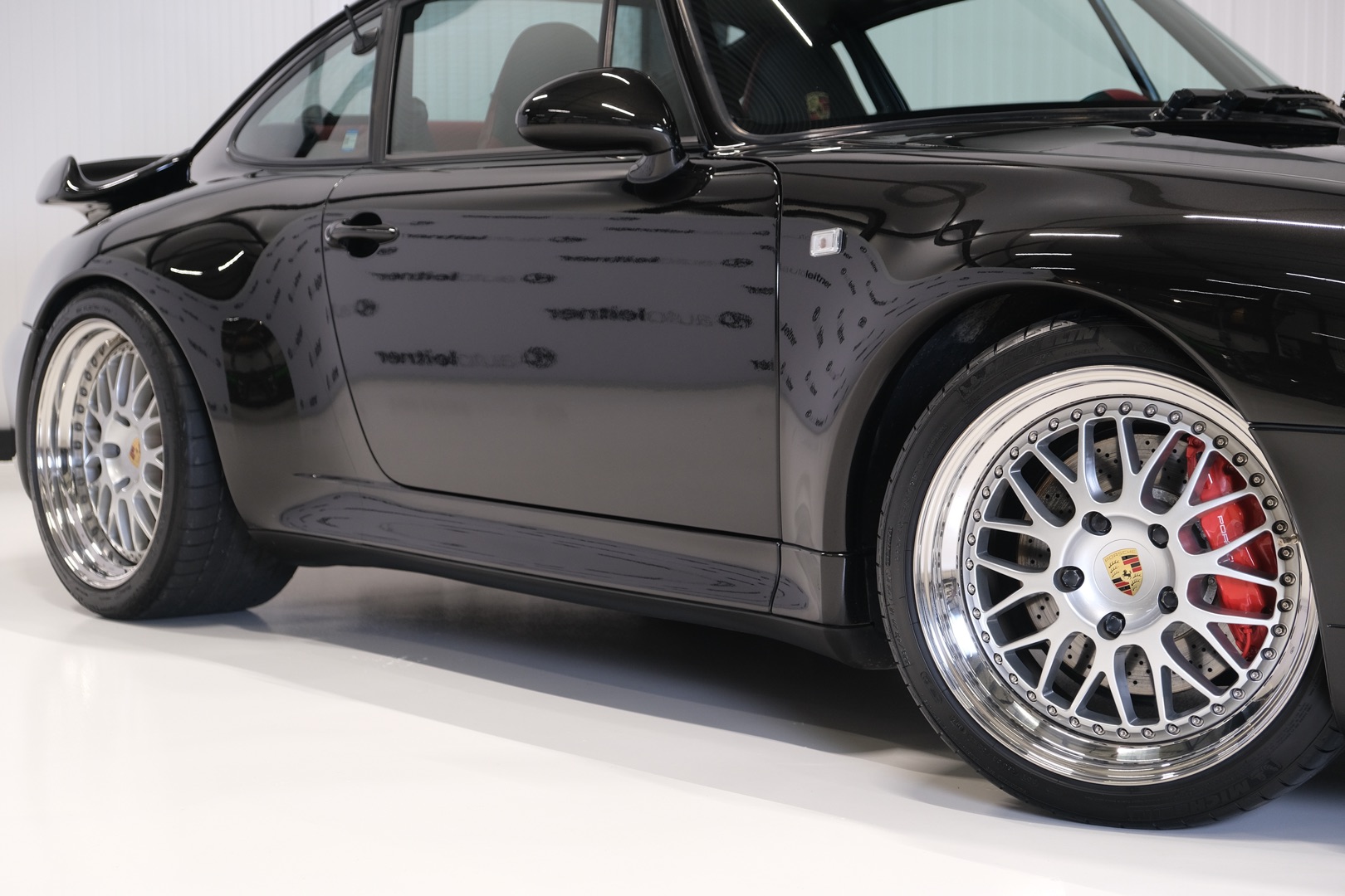 Een kraakheldere 1996 Porsche 993 Turbo met slechts aantoonbaar 59.202 km origineel. Destijds nieuw geleverd in Zwitserland en afkomstig uit een verzameling. Schitterend uitgevoerd in L744 Schwarz metallic met zwart/rood lederen interieur. Mooie complete uitvoering en naderhand aantal modificaties gehad zoals de velgen, onderstel, carbon stabilisatiestang, carbon en aluminium interieurdelen en meer. Van voor tot achter in smetteloze conditie. Exportprijs zonder BTW is 239.500,- euro.