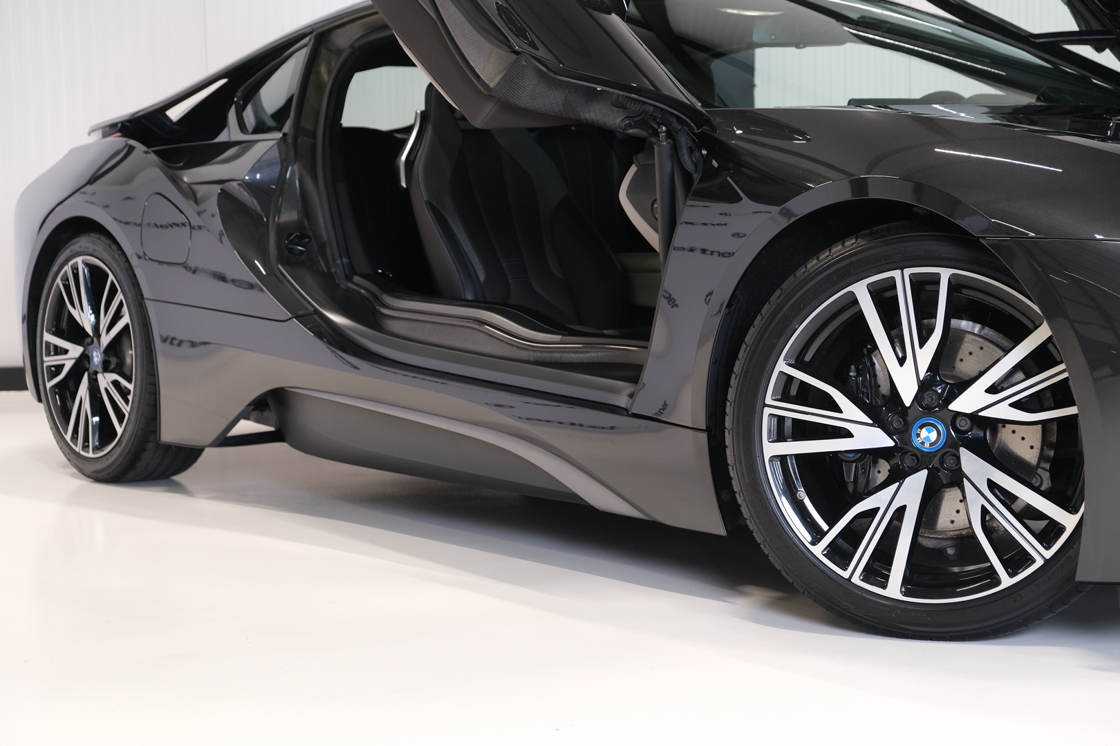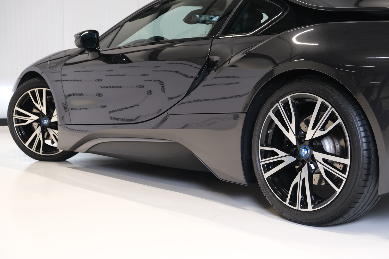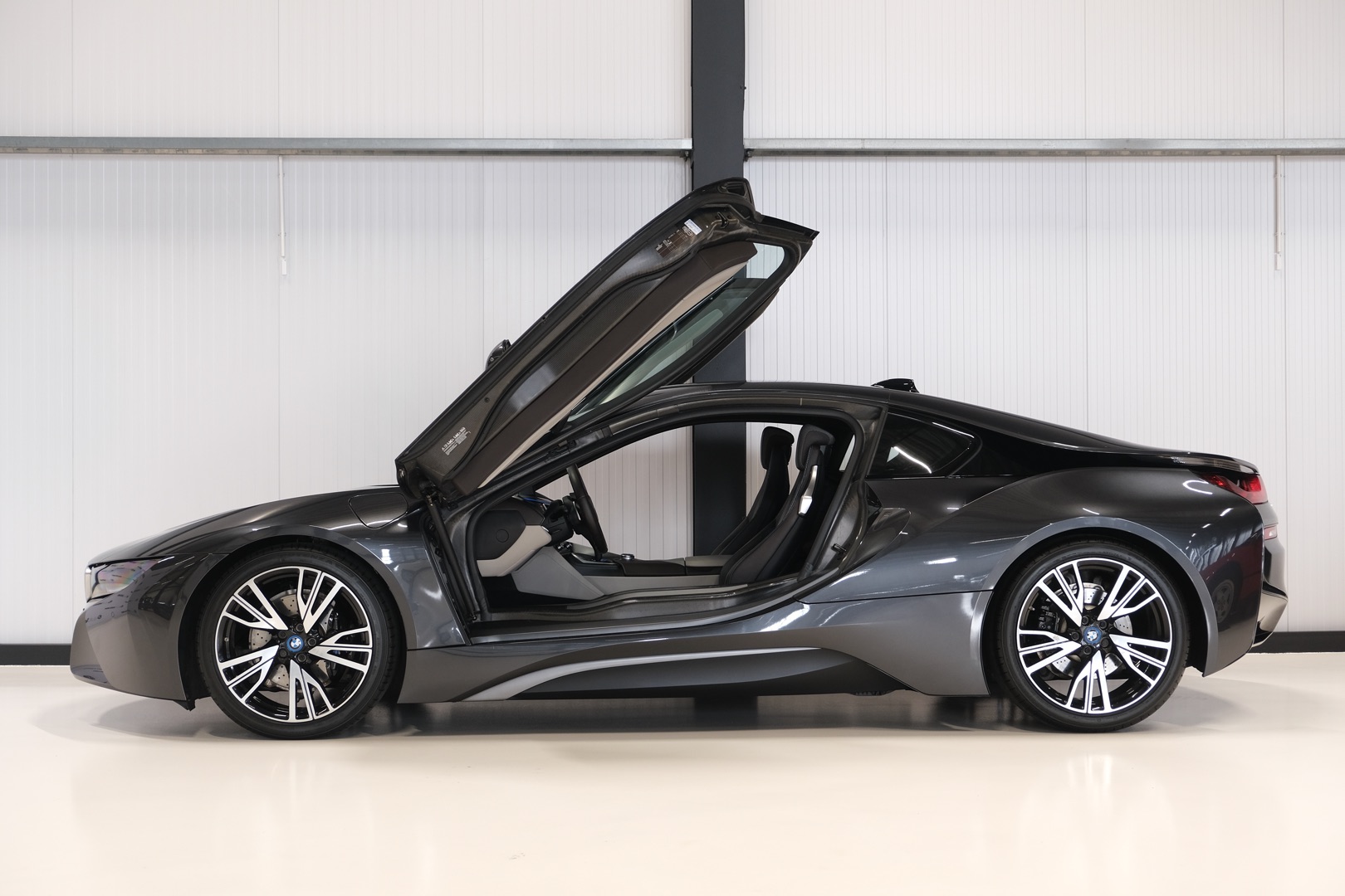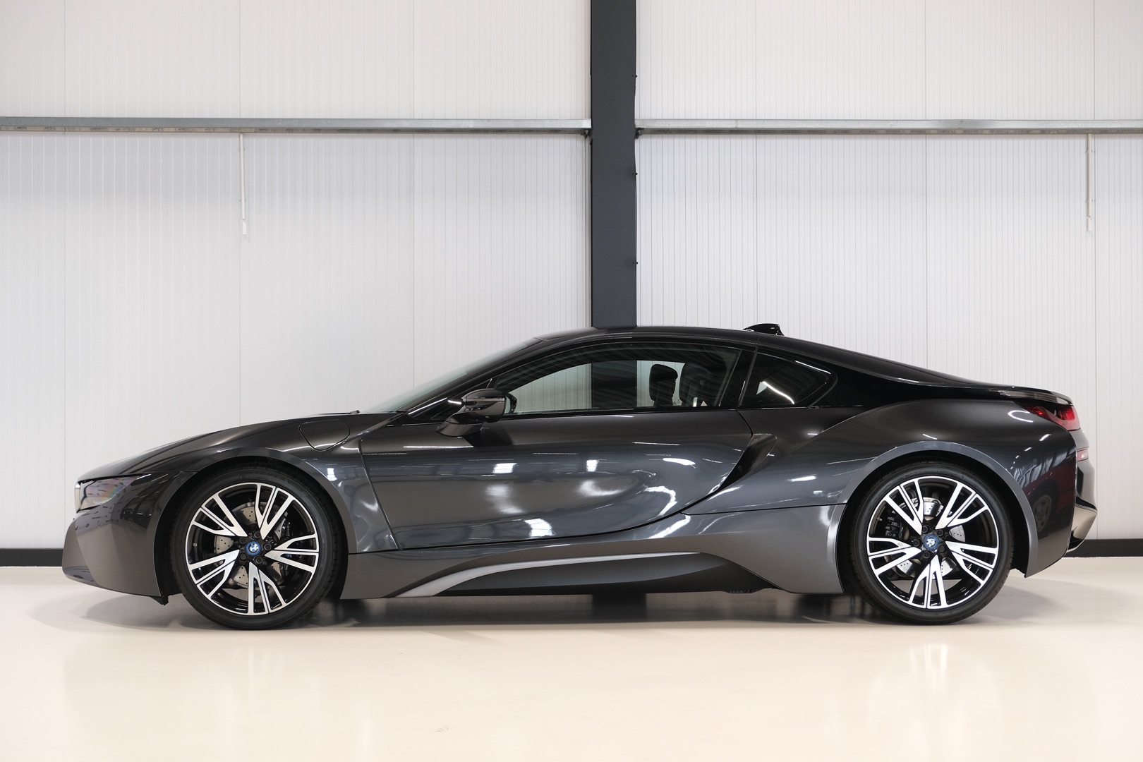 Afkomstig van de eerste Nederlandse eigenaar deze goed uitgevoerde 2014 BMW i8 Coupe in Sophistograu metallic met bijpassend Dalbergiabruin natuurlederen interieur. Van voor tot achter in kraakheldere conditie en geheel in eerste lak. Geheel BMW dealeronderhouden met sluitende historie.